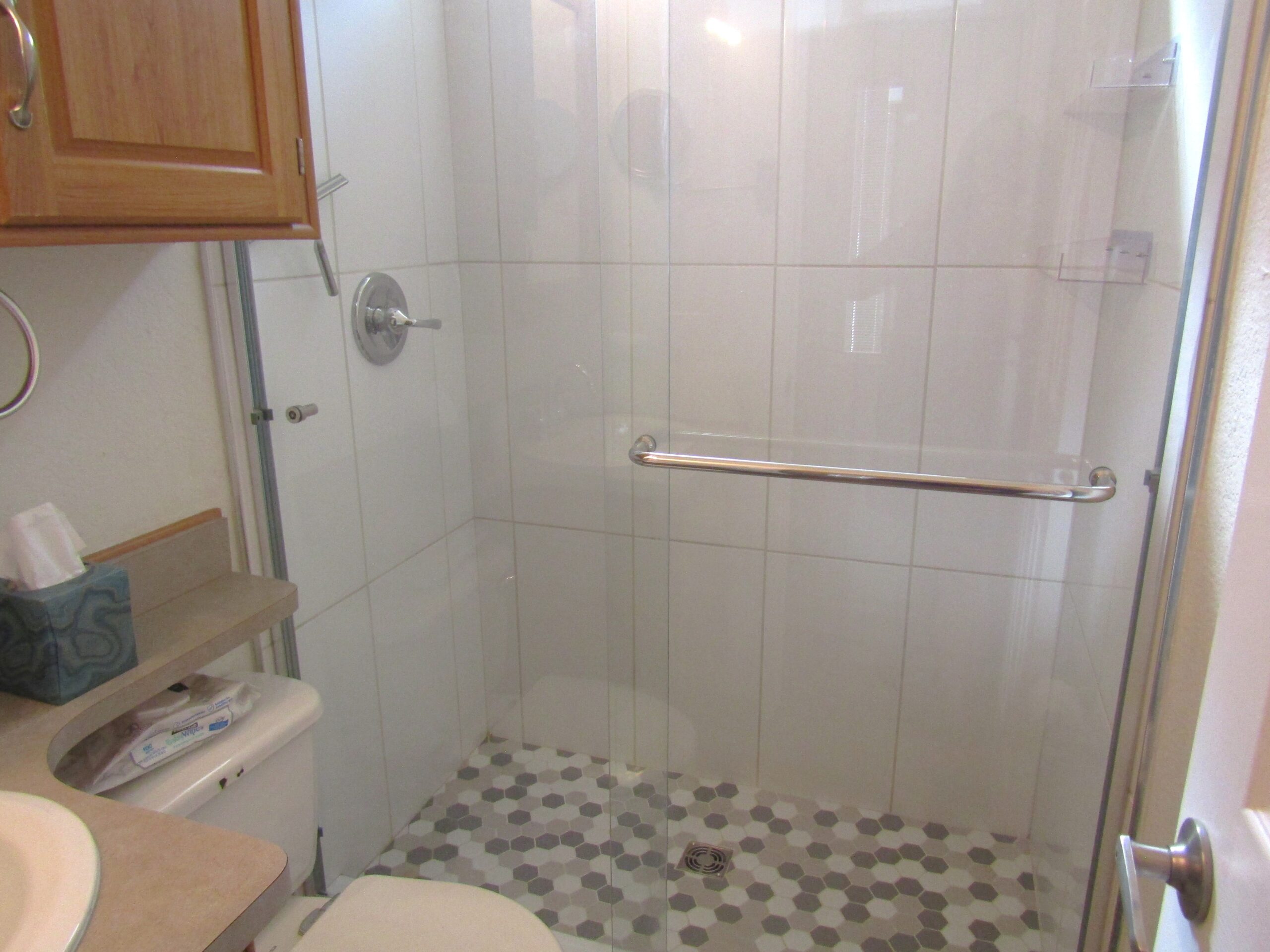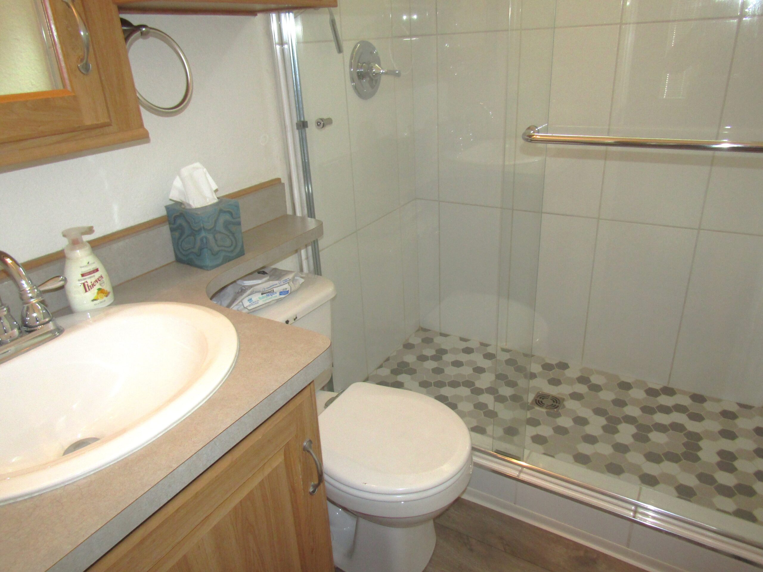 • Bathroom has Step-In Tile Shower, Vanity & Cupboards