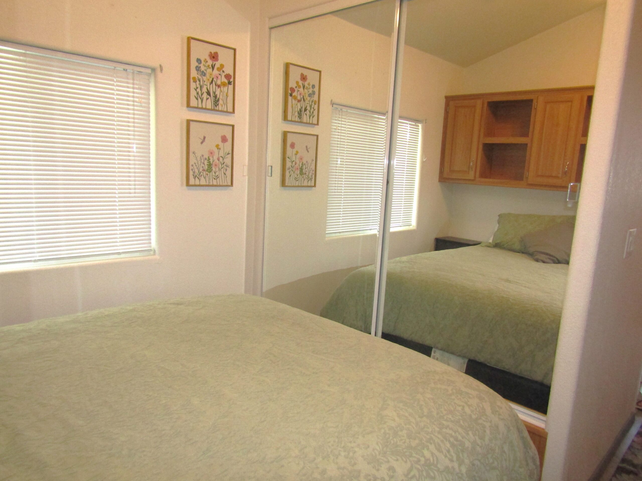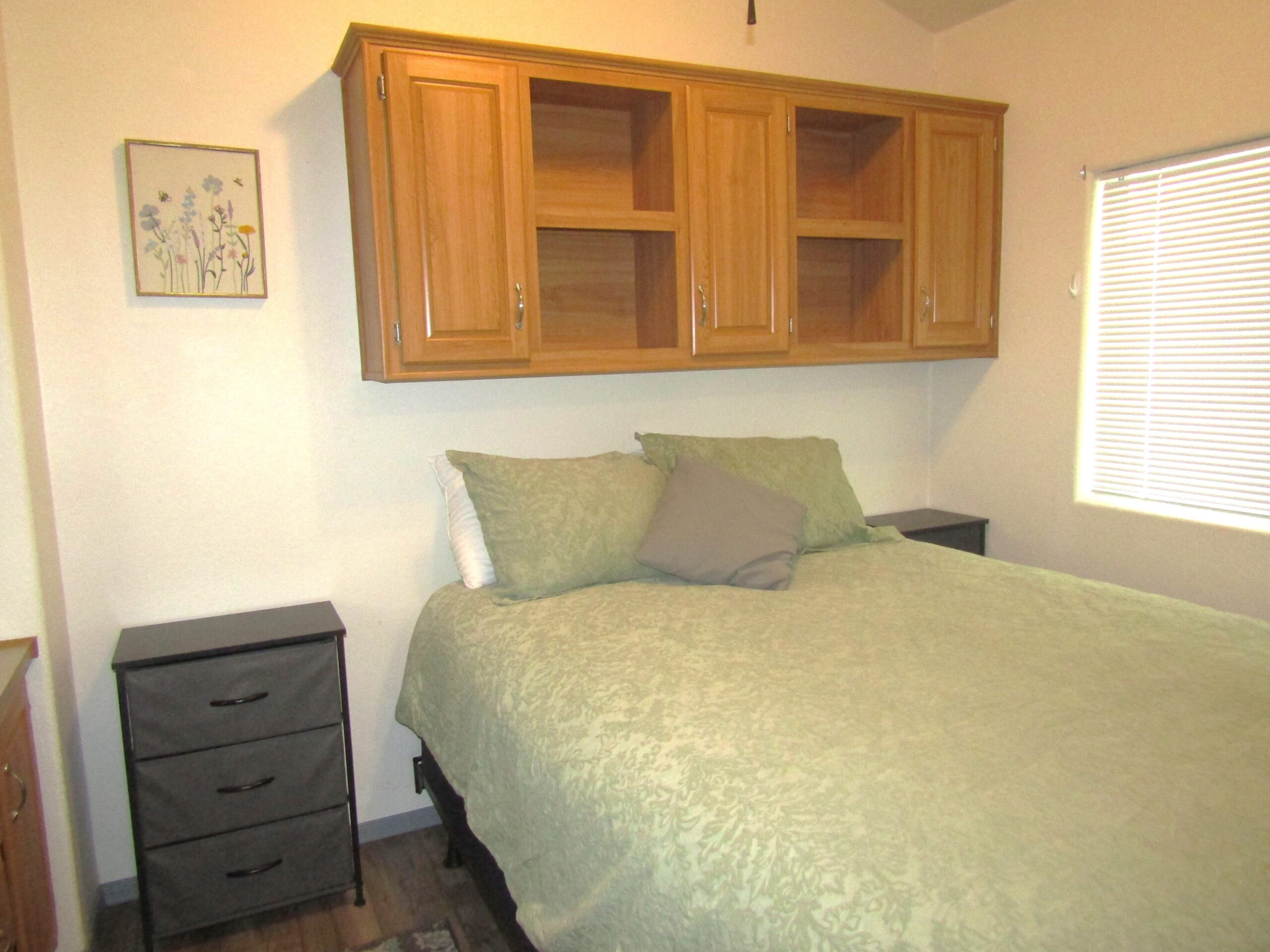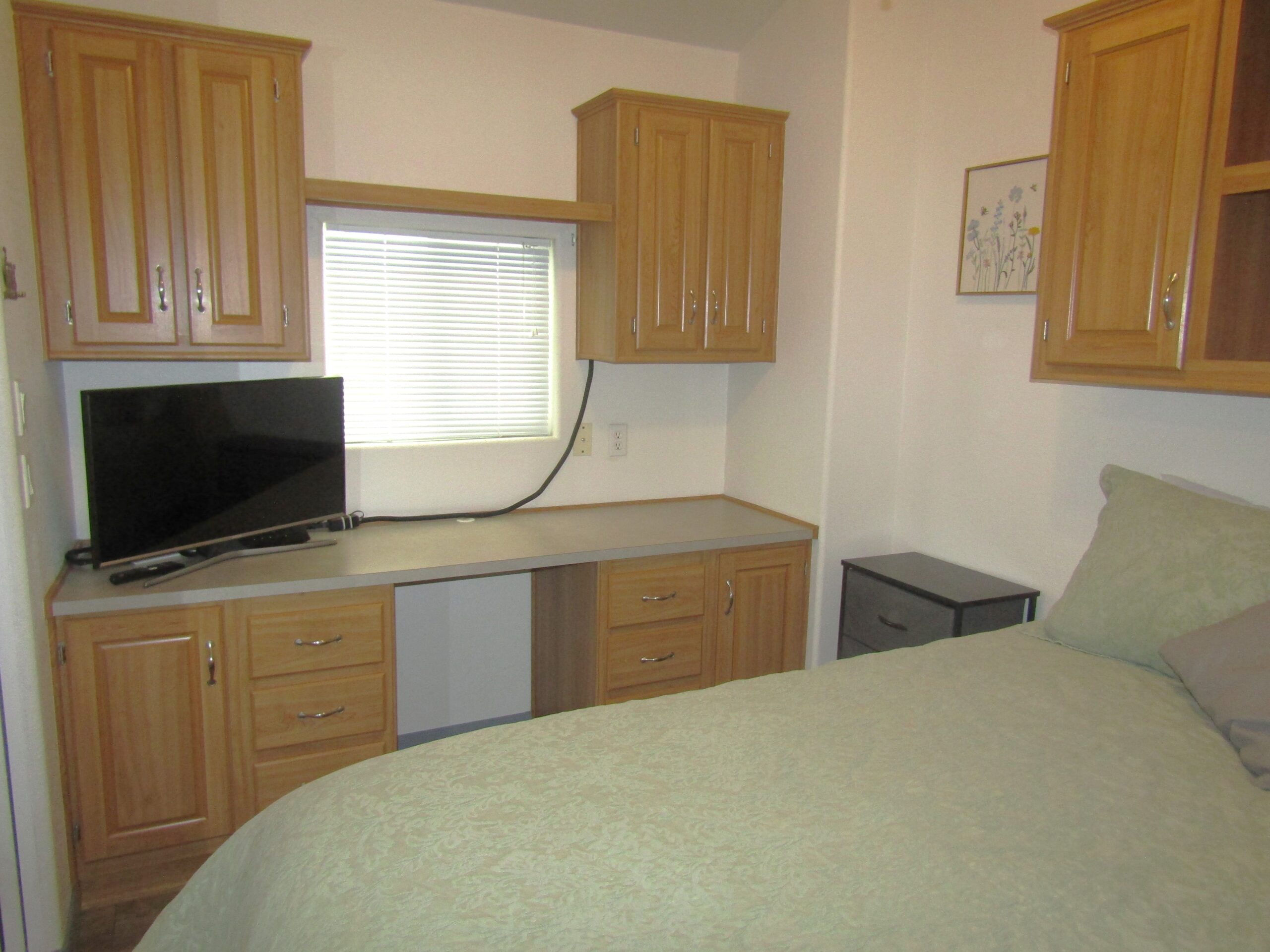 • Queen Bedroom w/Mirrored Closet, Built-In Dresser, Upper Cabinets, & Desk /Counter Area