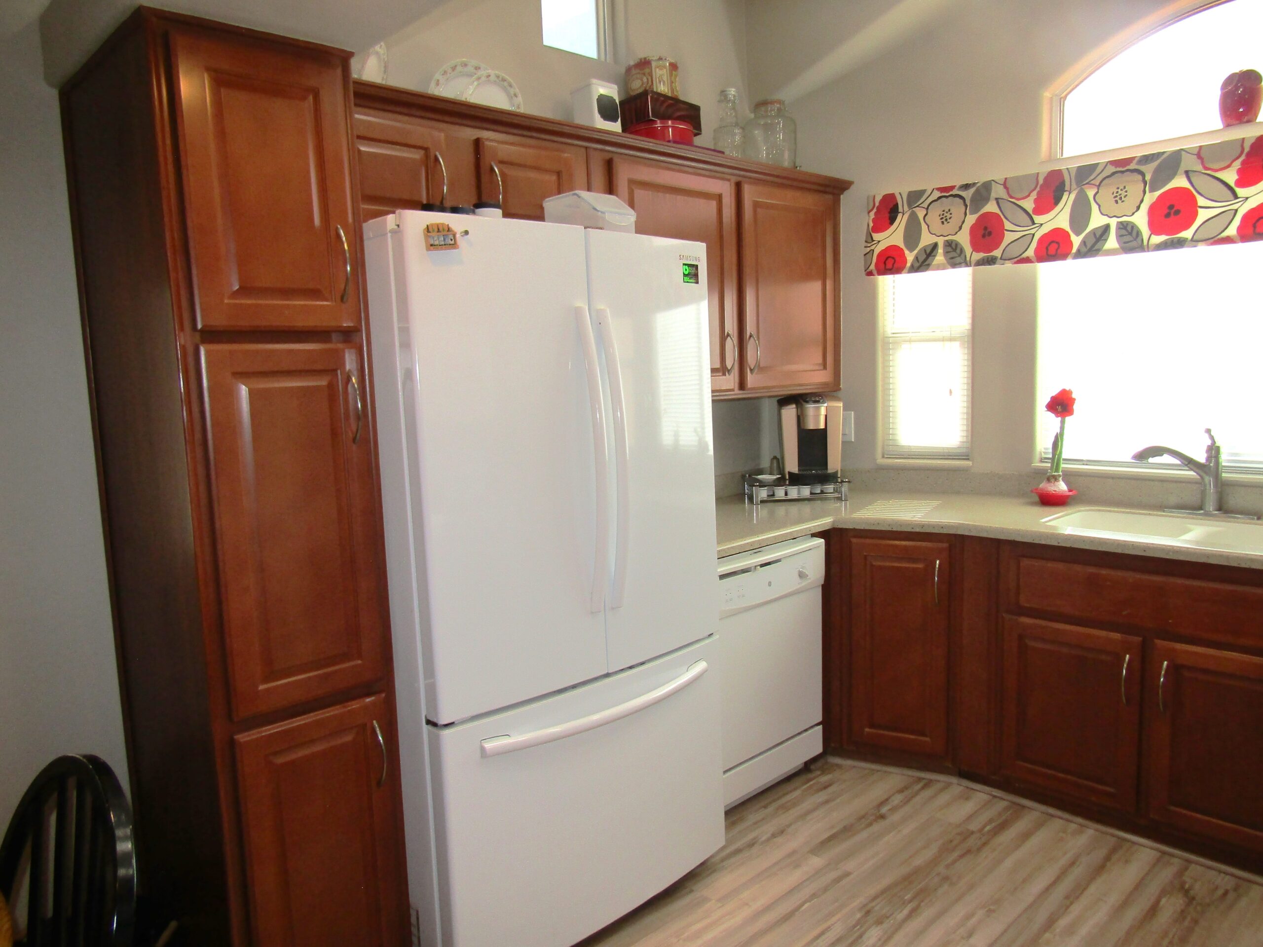 - Full-Front Kitchen w/Carousel Wrap Around Cabinets, Matching White Appliances, XL Fridge, Corian Counters, Disposal, & Dishwasher