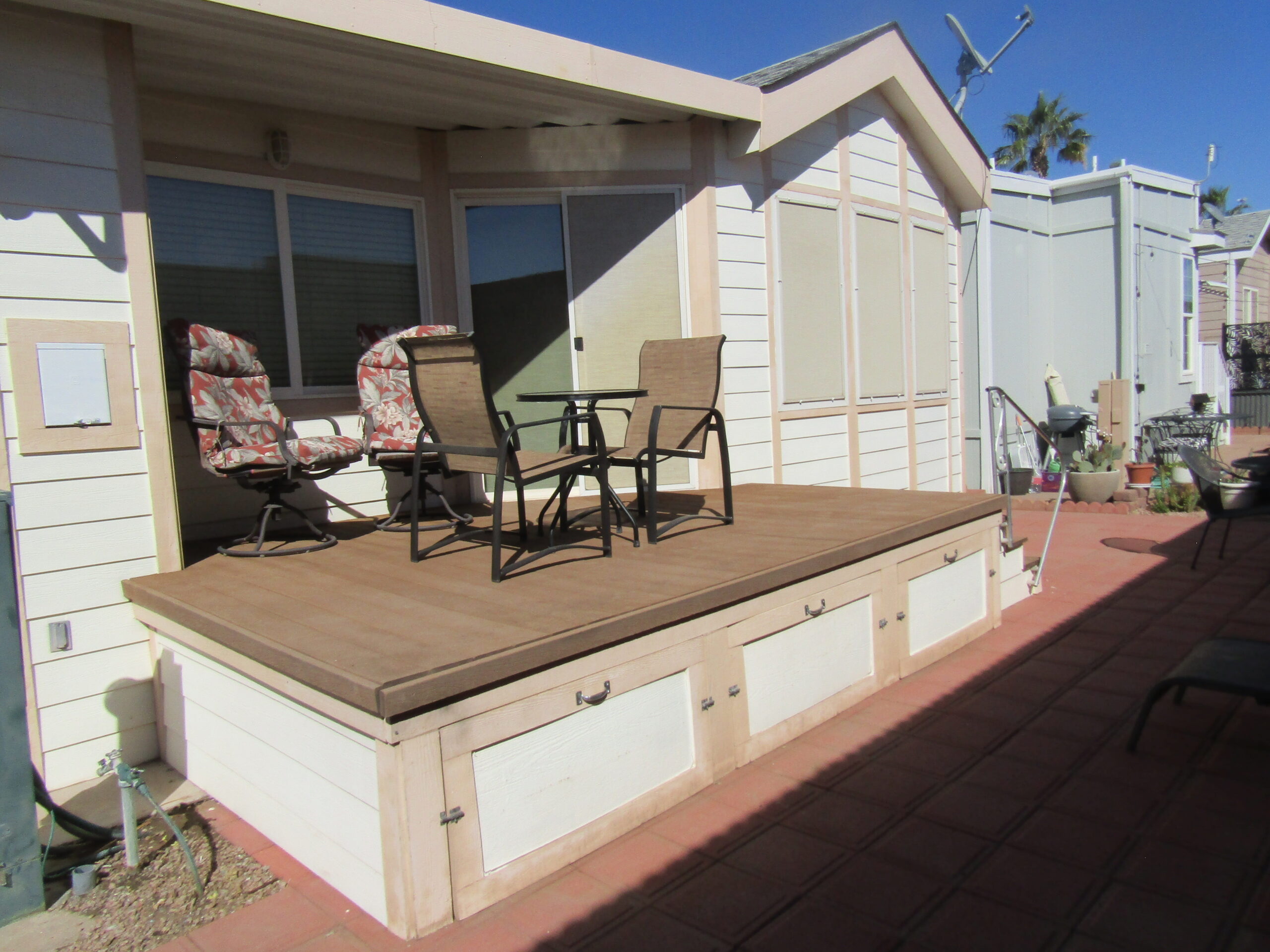 - Raised Composite Back Entertaining Deck, Back Patio Pavers, Epoxy Driveway, Off-Set Post, & Storage Under AZ Rm