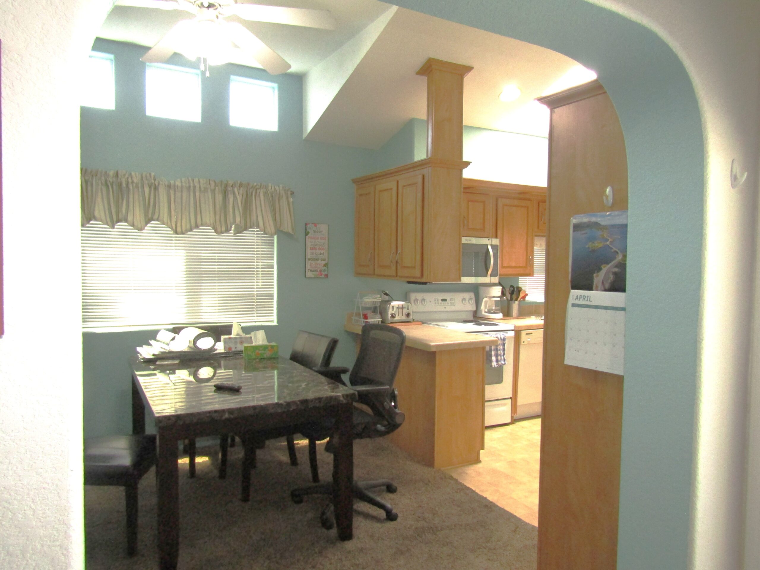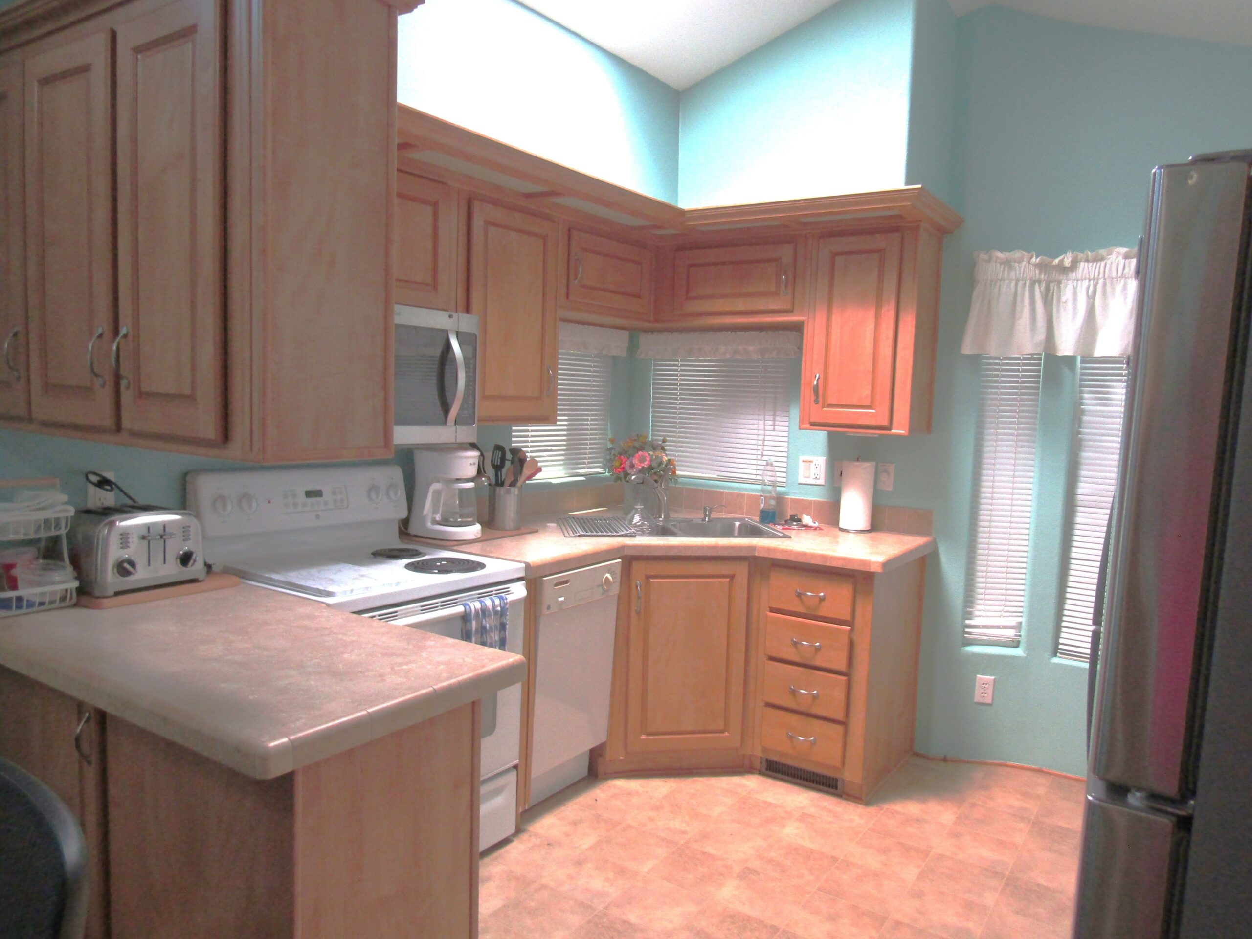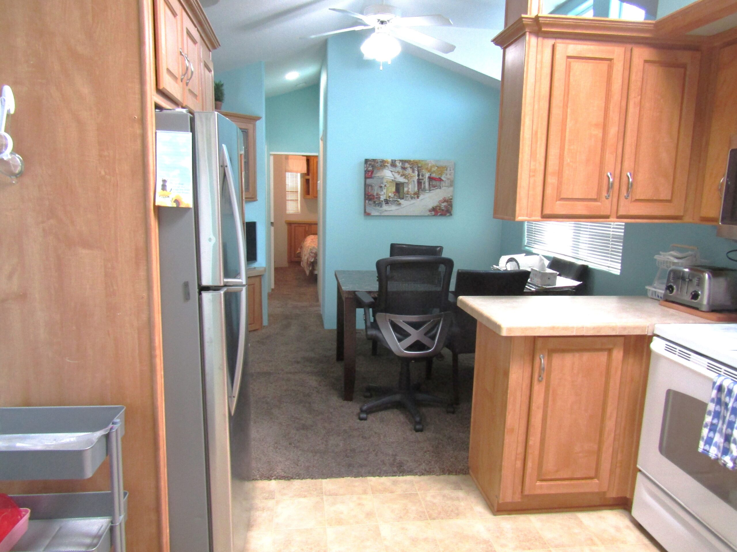 - Front/Side Kitchen w/Dishwasher, Newer SS Fridge & Microwave, Skylight, Linoleum Floor , & Dinette Area