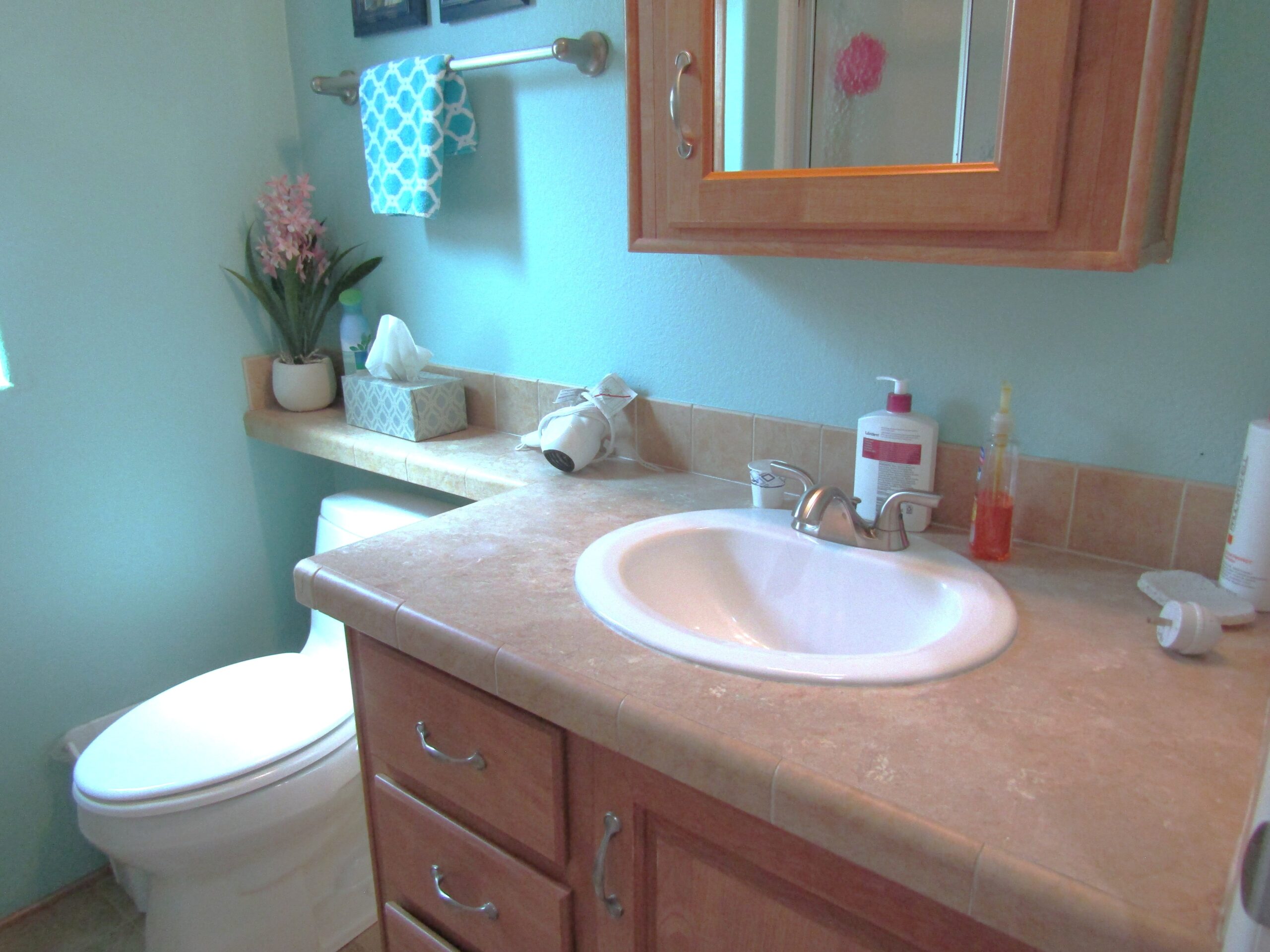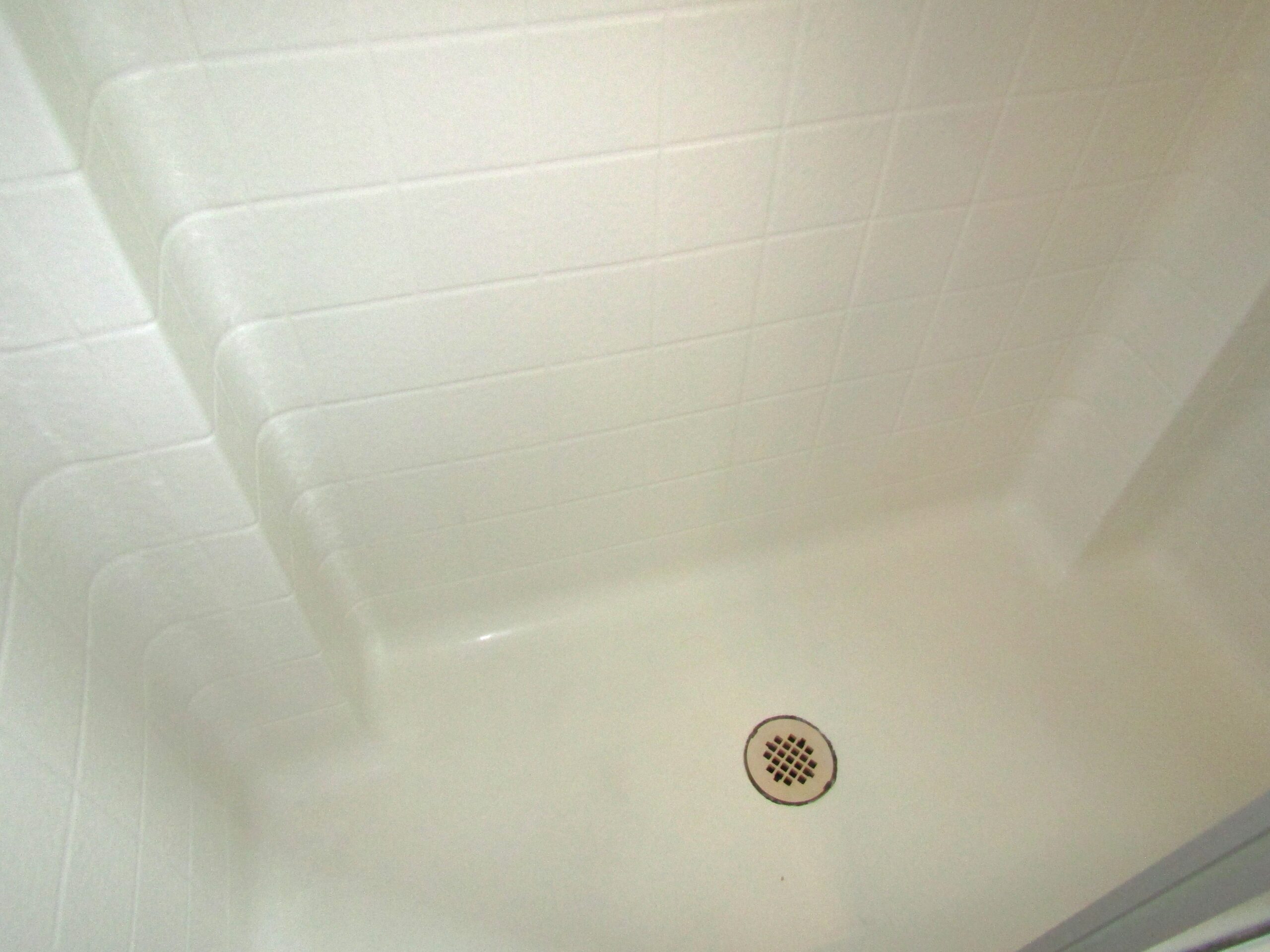 - Bathroom has Step-In Shower, Large Vanity, & Linoleum Floor