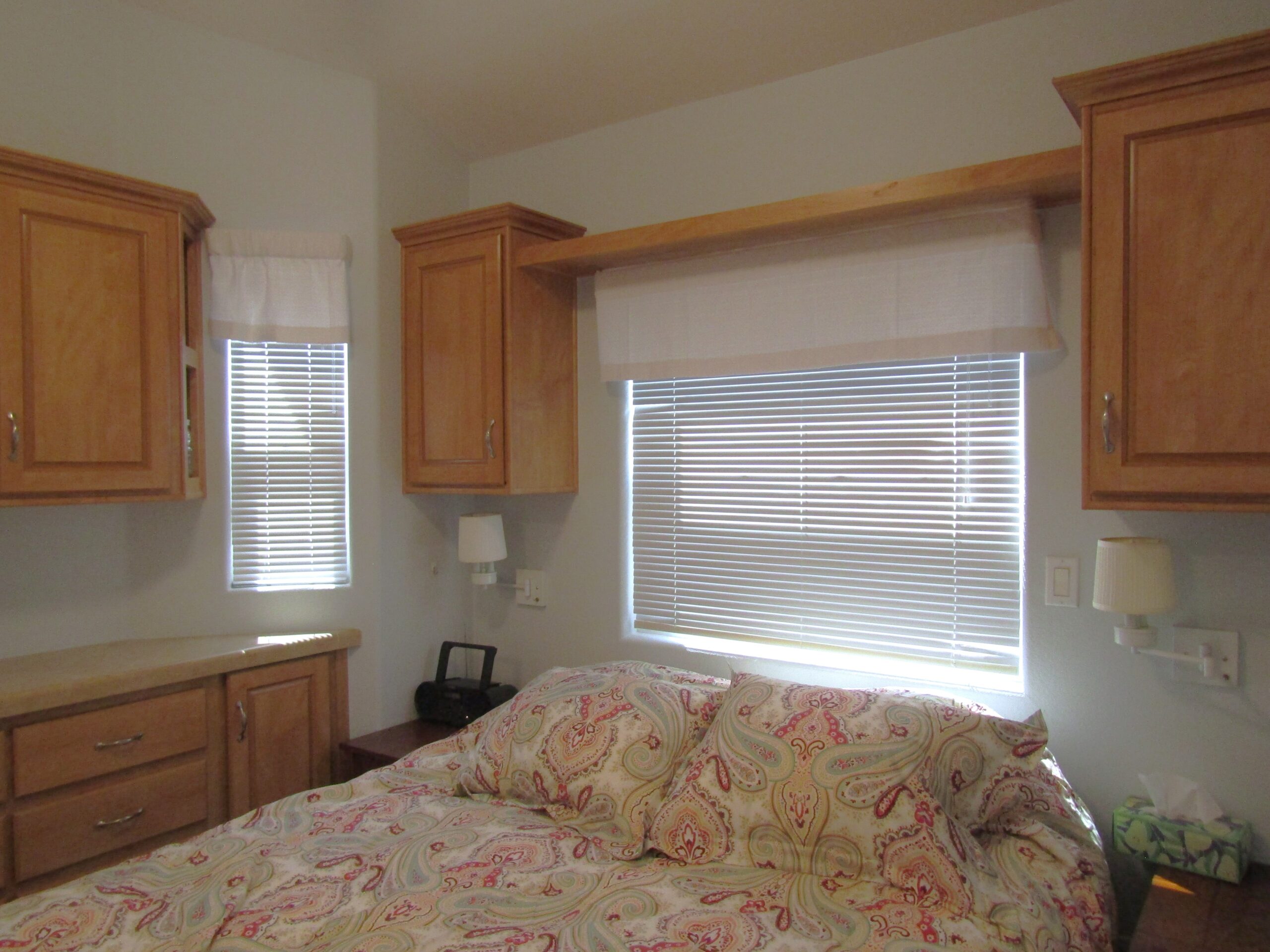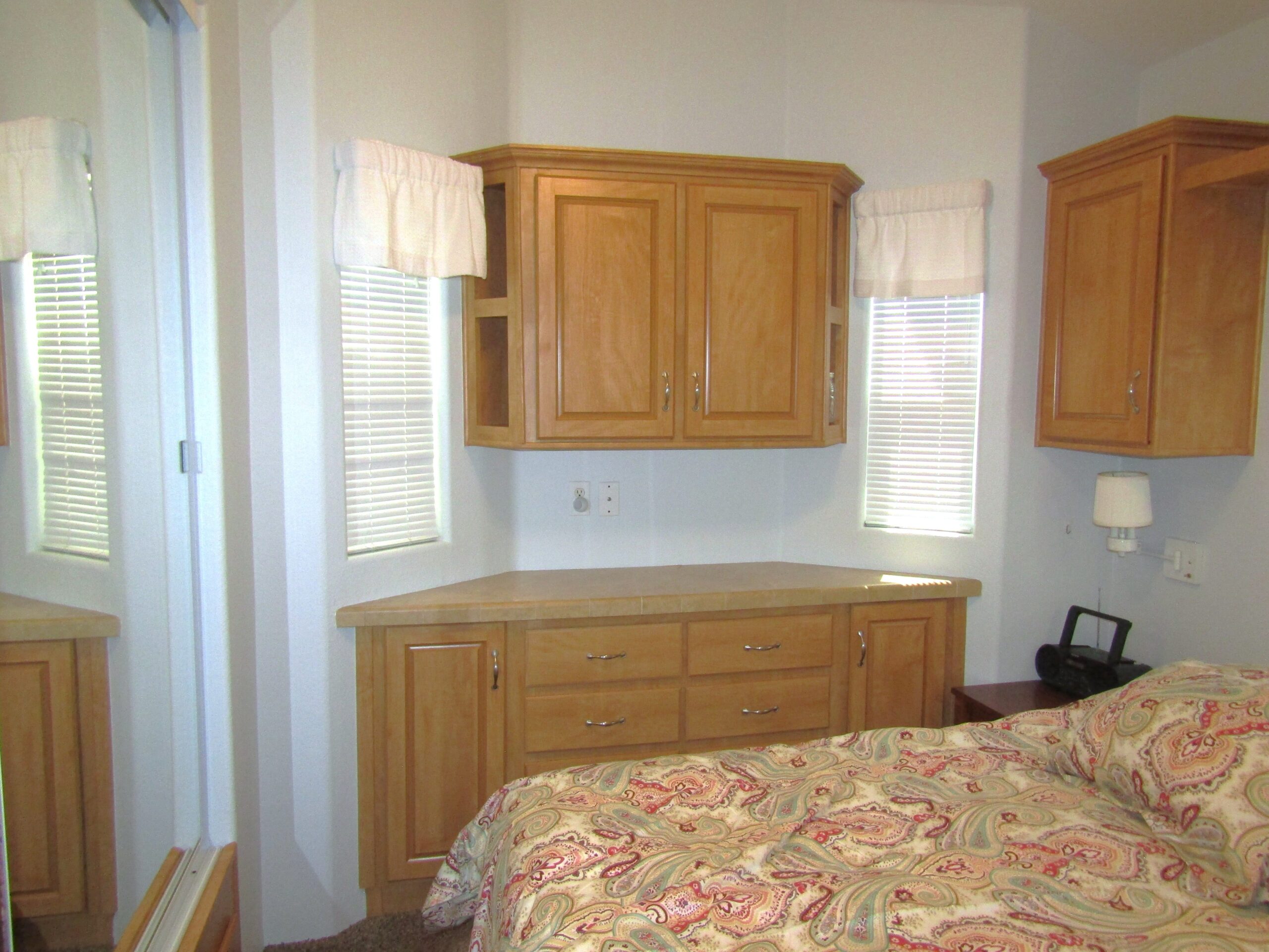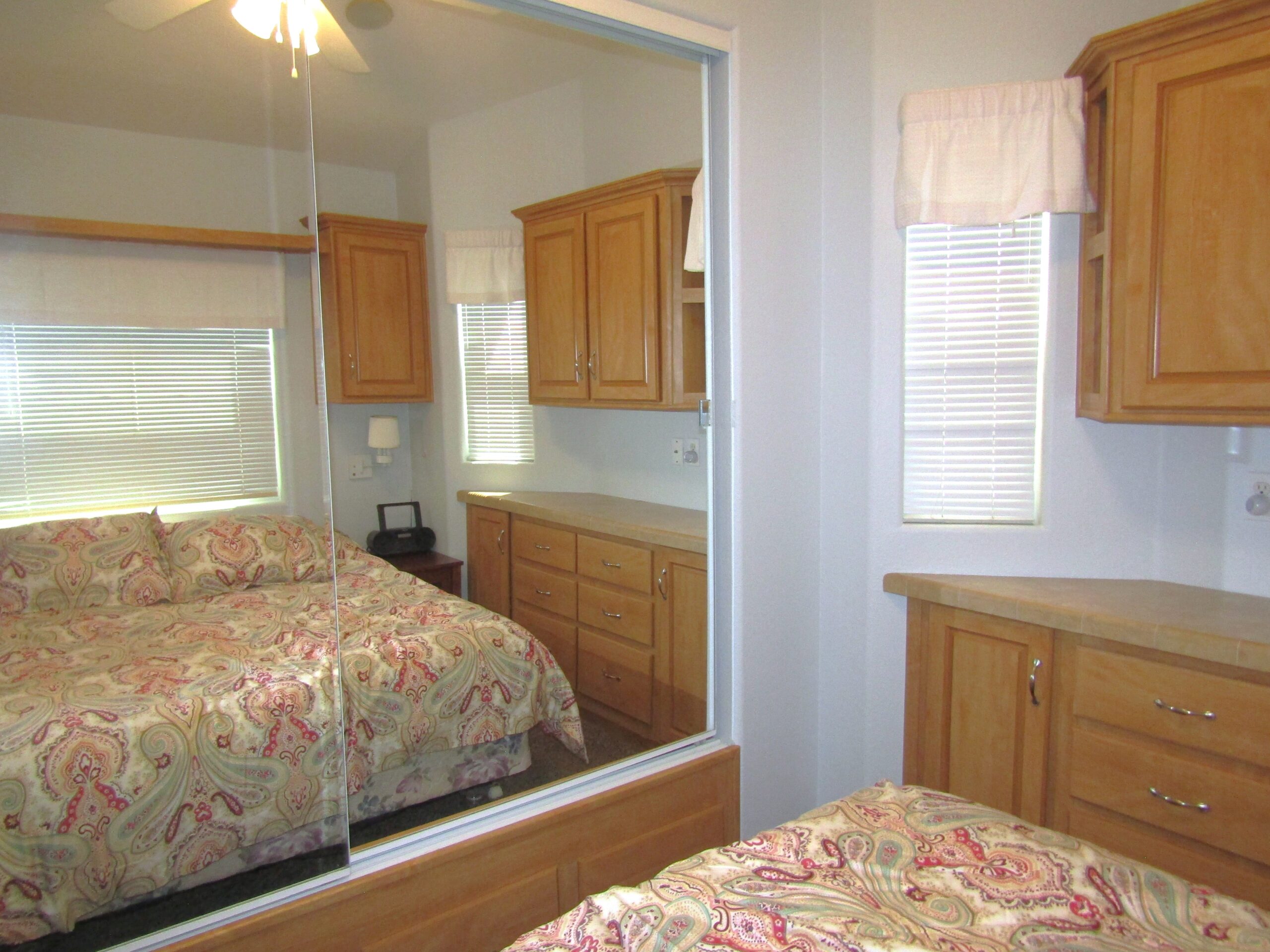 - Carpeted Queen Bedroom w/Mirrored Closet, Built-In Dresser, & Upper Cabinets