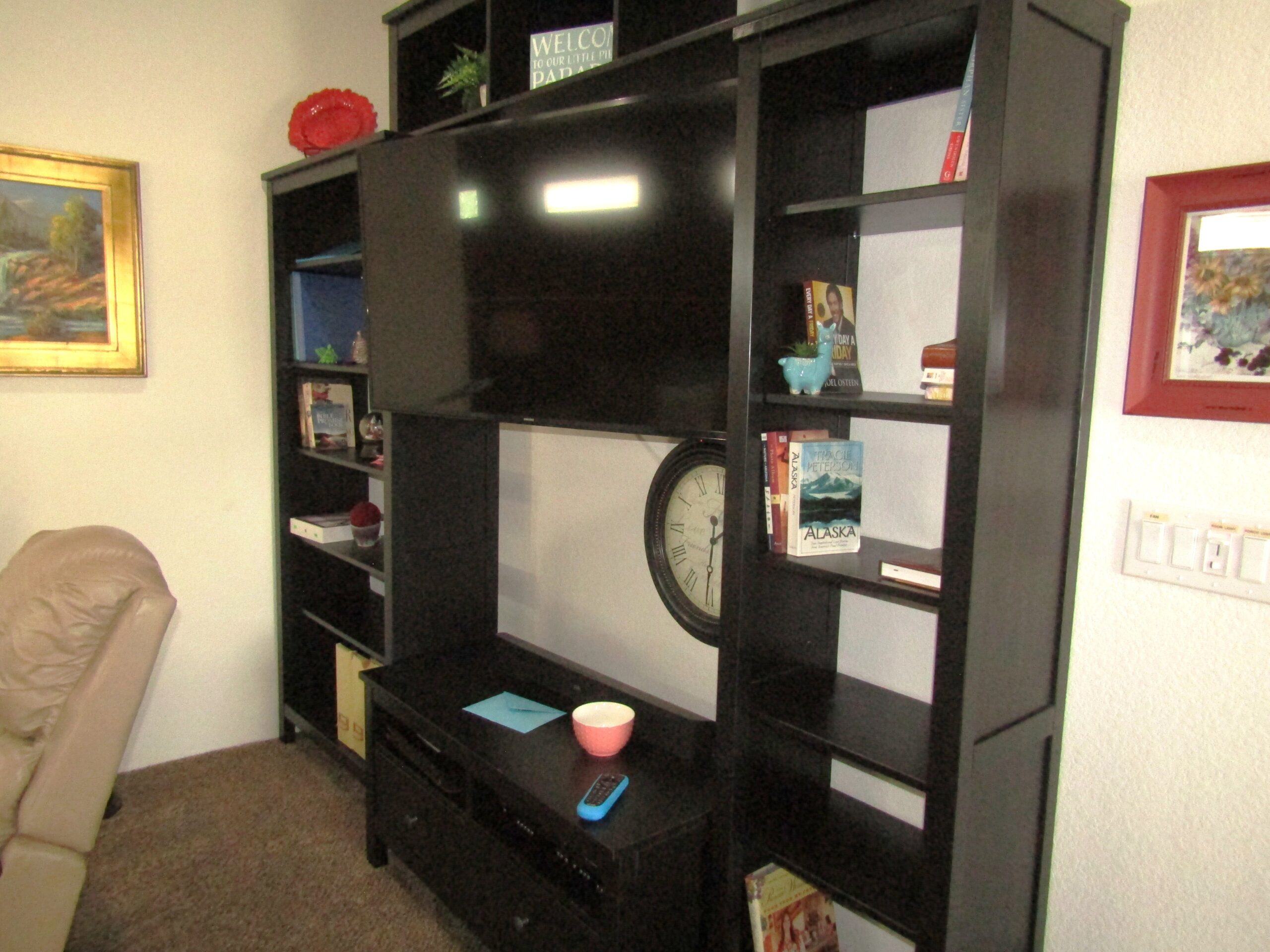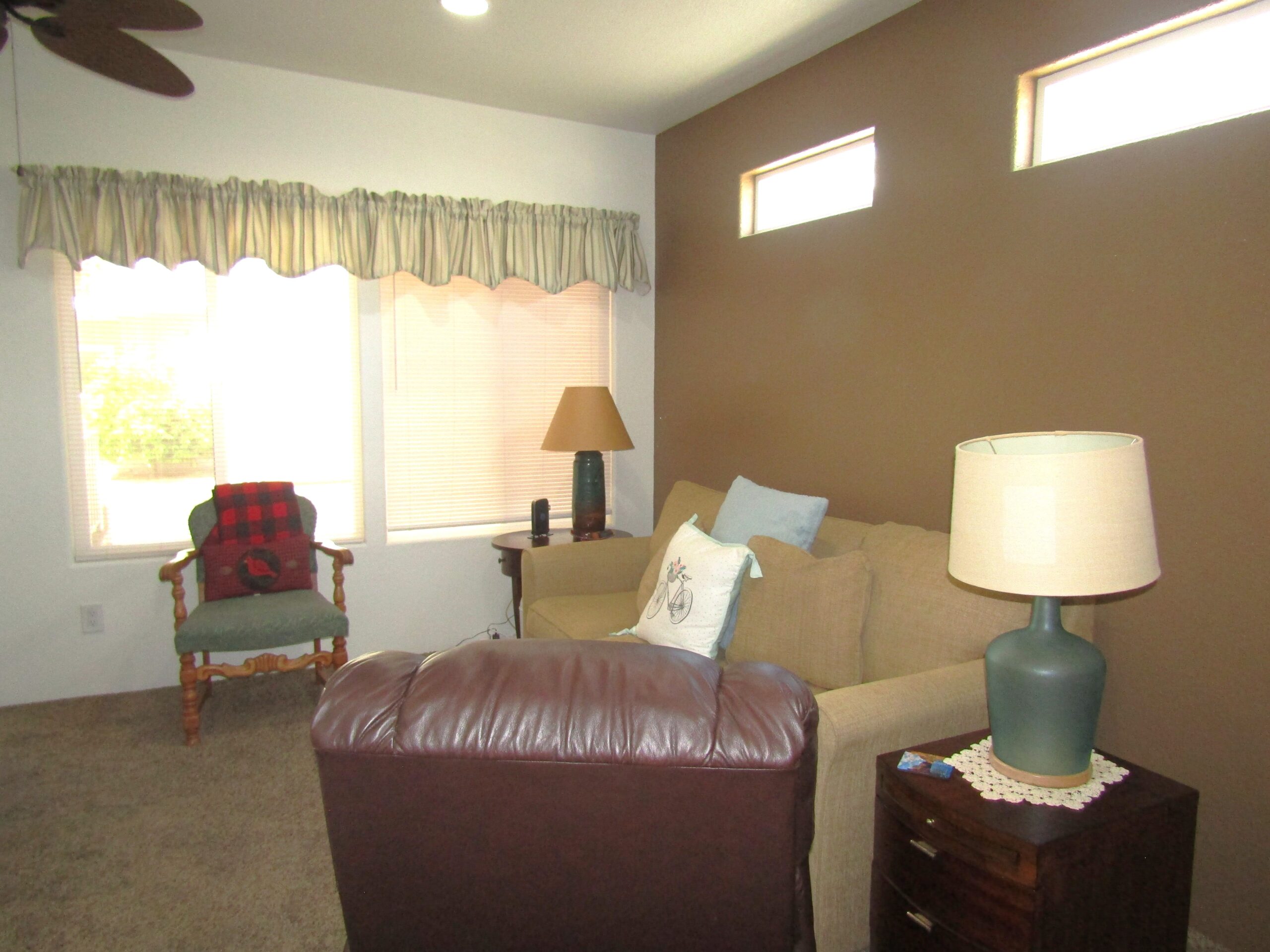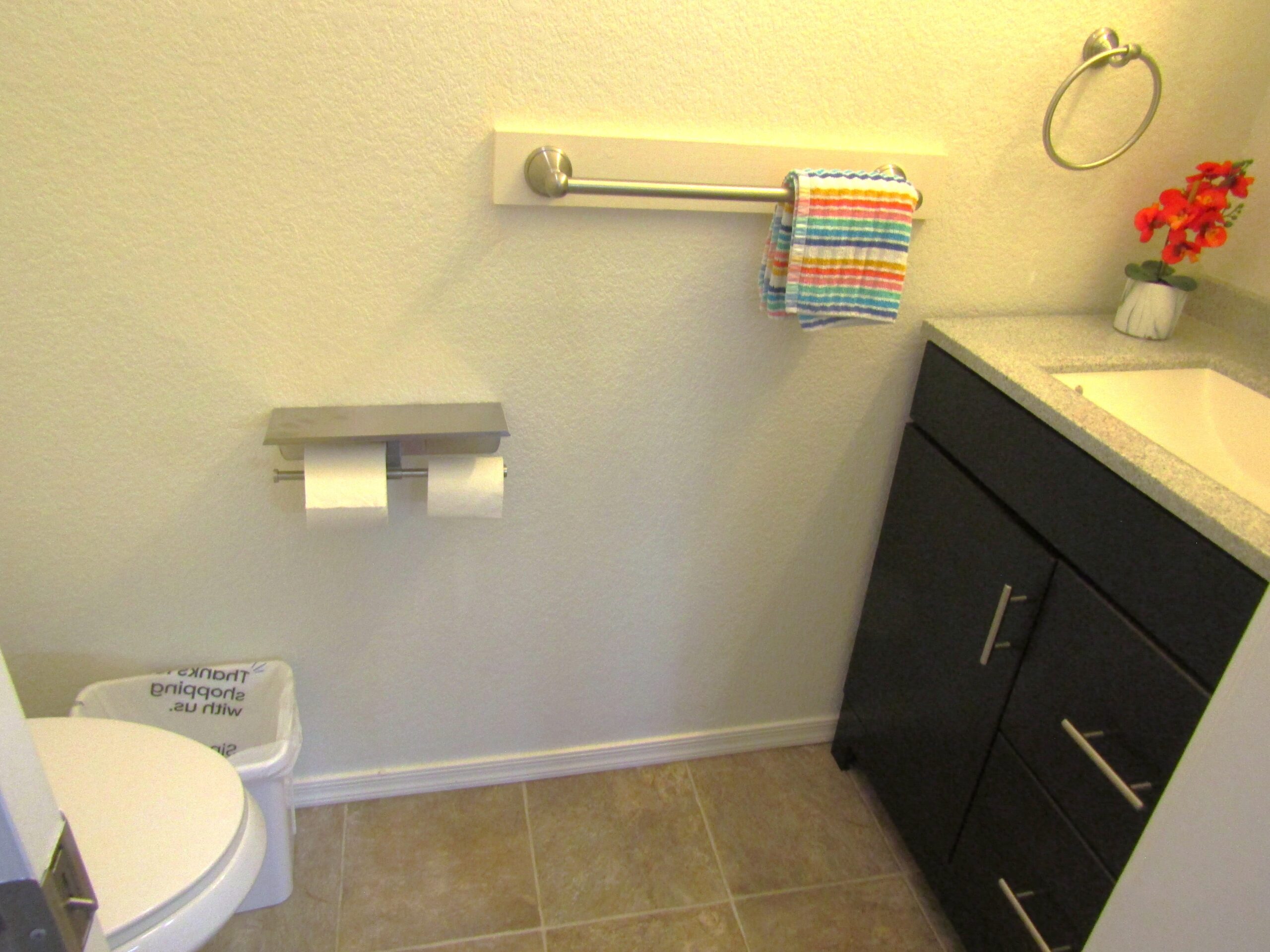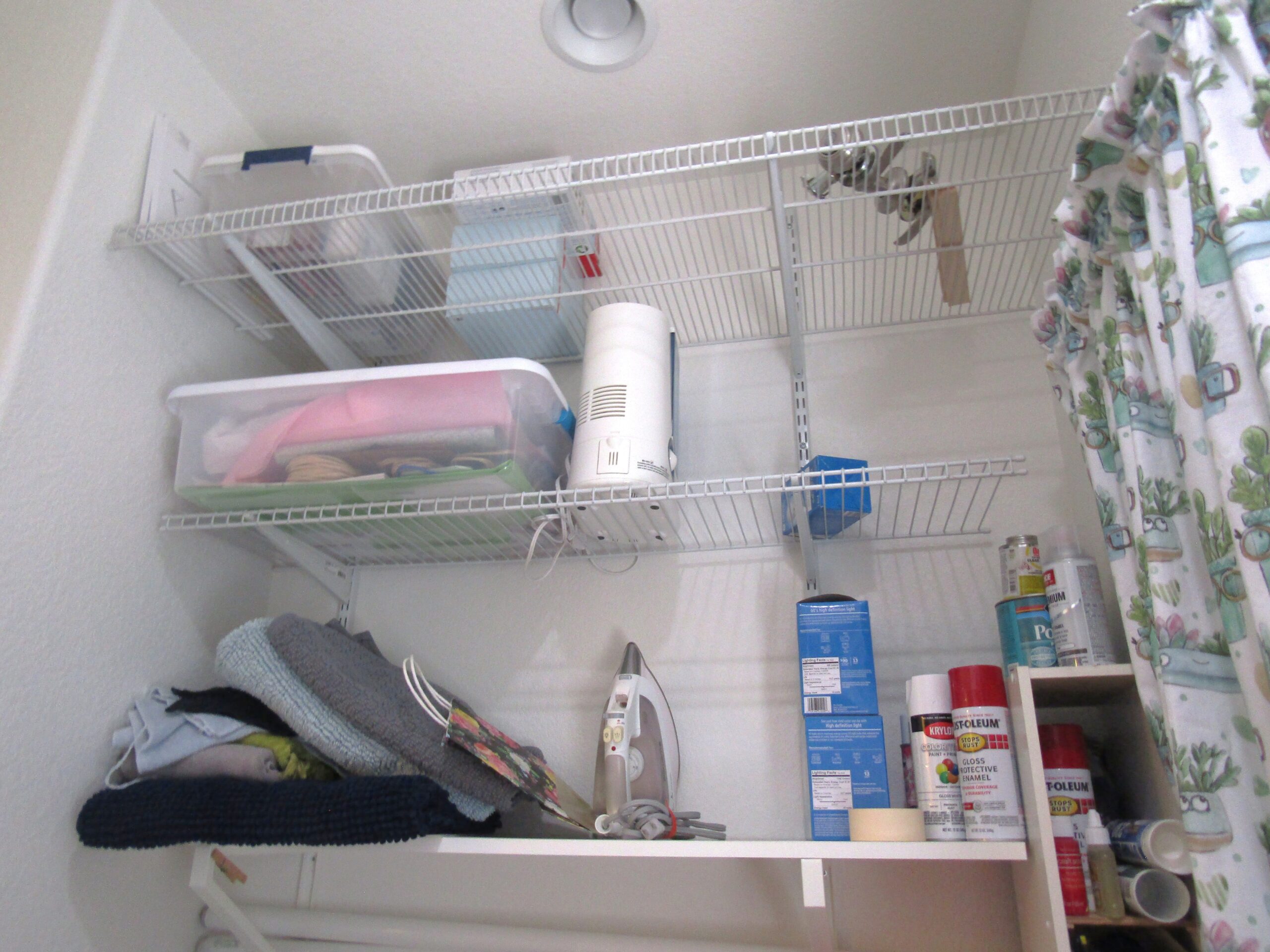 - Carpeted Raised AZ Room w/Desk Area, Hallway, 2nd 1/2 Bath, Closet, Counter/Work Area/Shelving, Back Door & Newer Full-Size Stackable Laundry, Upper Windows