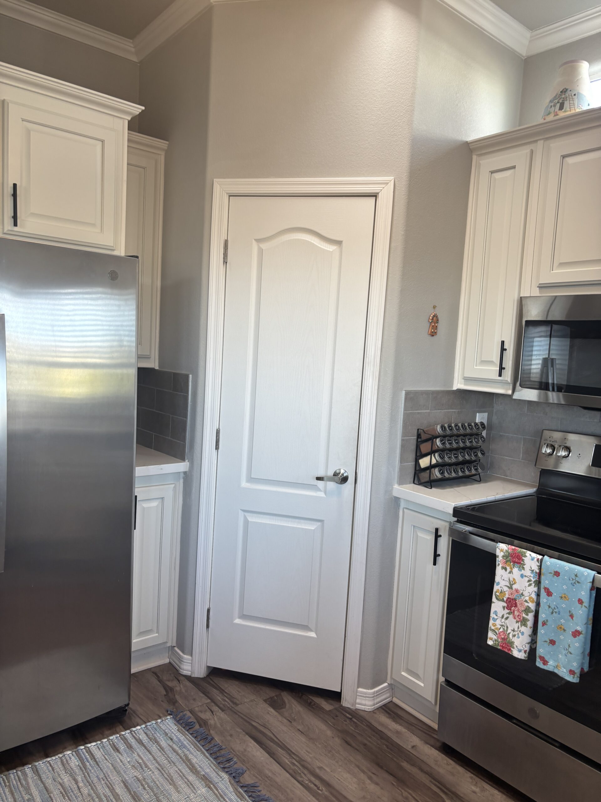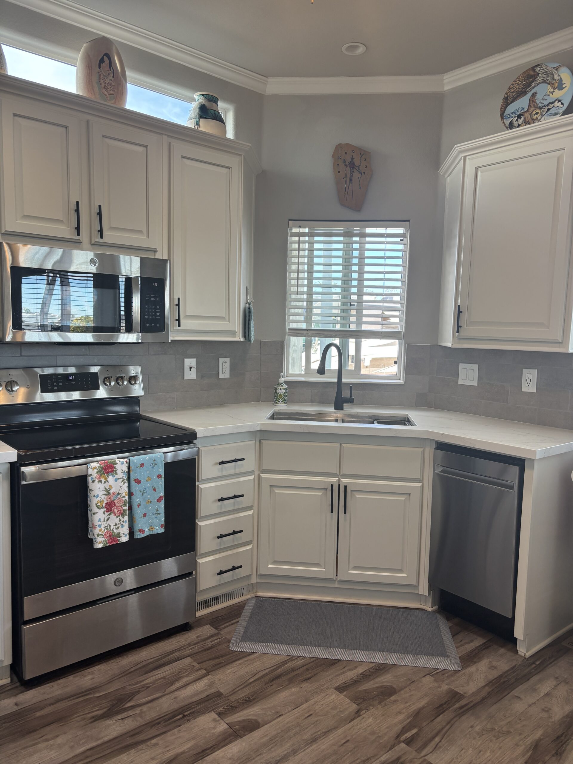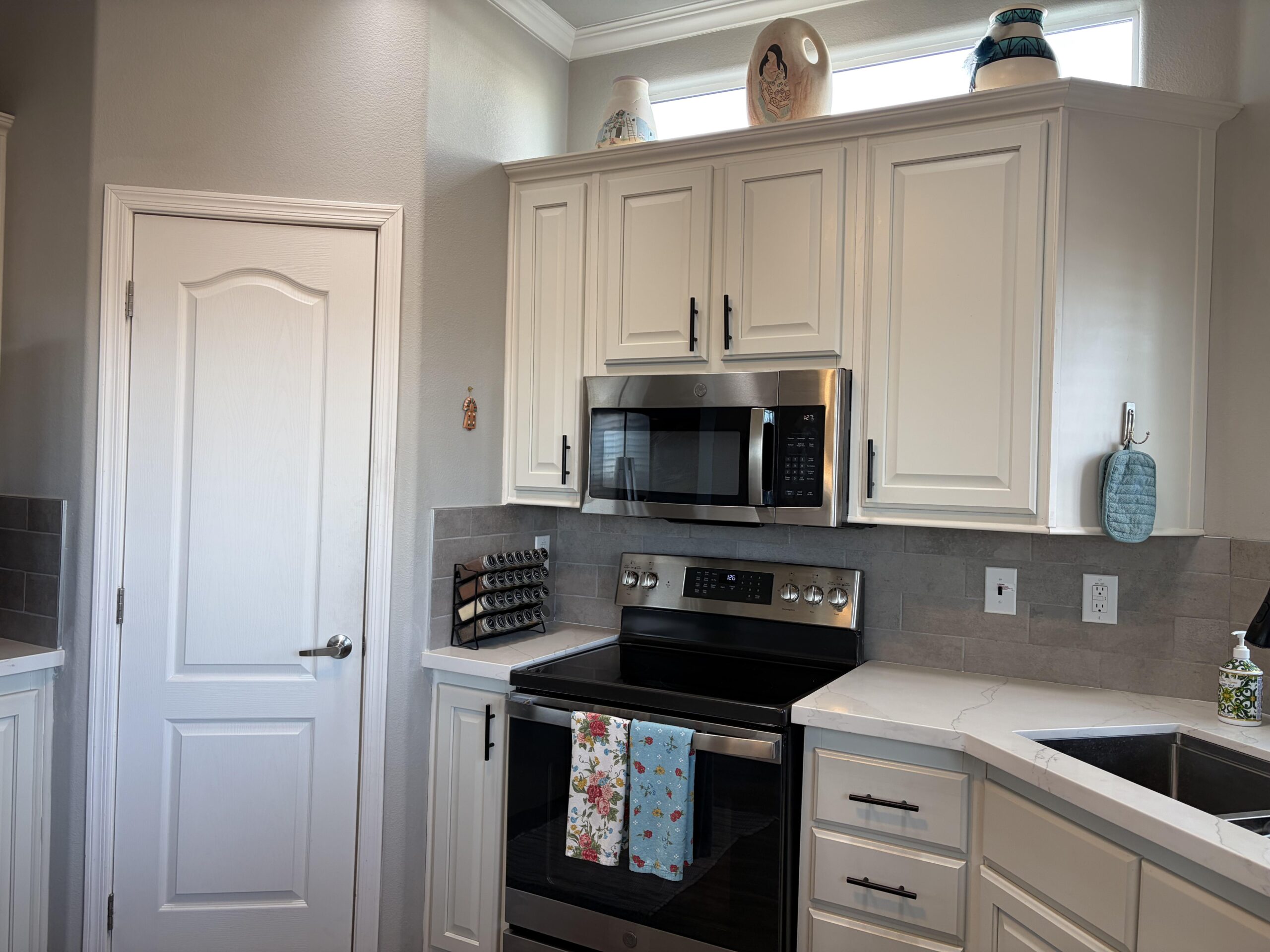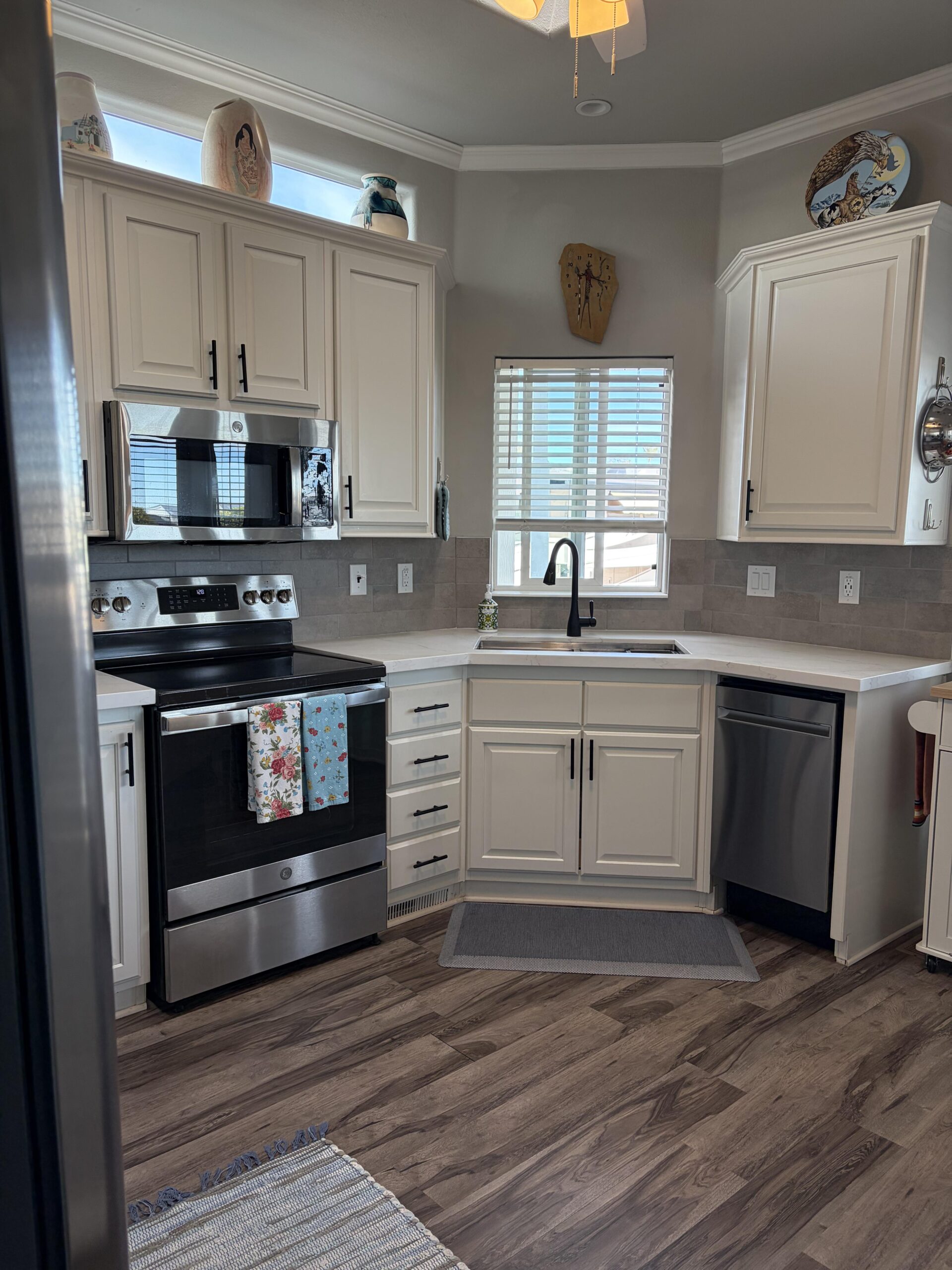 - Front Gourmet Kitchen w/Walk-In Pantry, 39” NEW Extra Shelving, SS Appliances, Dishwasher, 22CF Side-By-Side Fridge, Smooth Top Range, NEW Loose Island, NEW Quartz Countertops, Tile