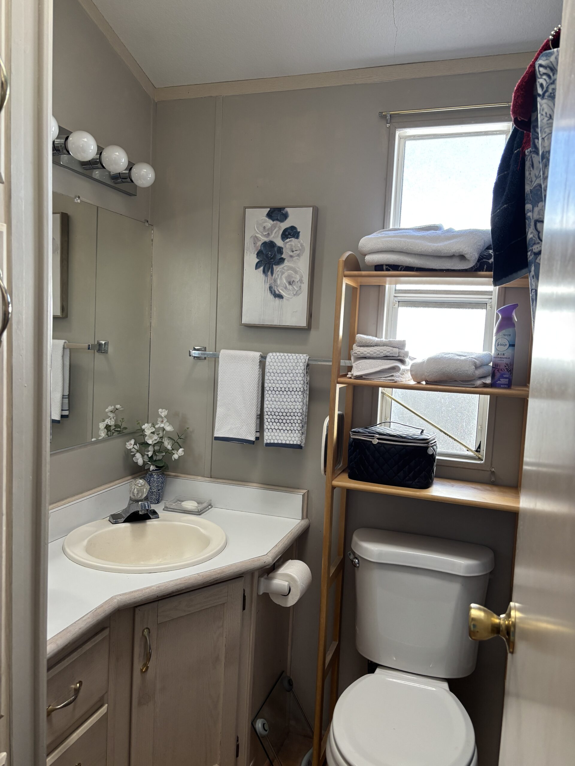 - Bathroom w/Shower & Tub Combo, Linen Cabinet, & Skylight