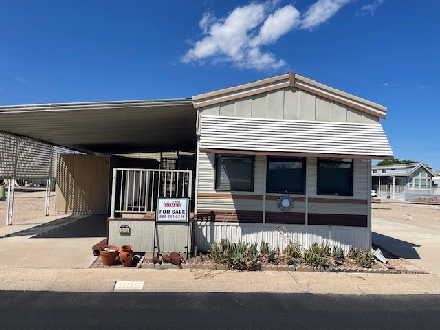 Open kitchen with updated appliances, Southwest styling throughout. Lots of storage space both inside and out. Full awning on 1 side for deck, carport, and shed. Great location next to the pool and clubhouse.