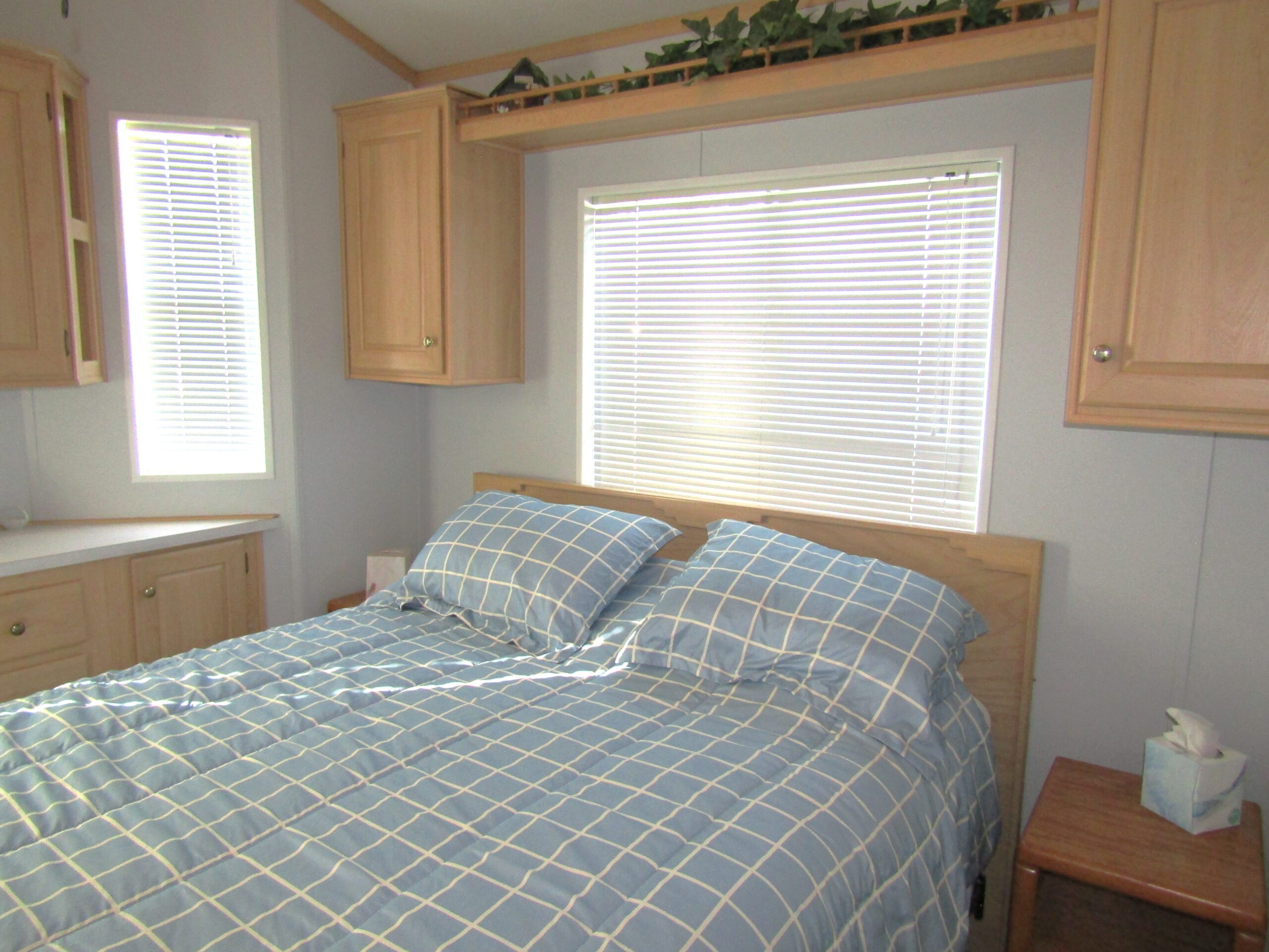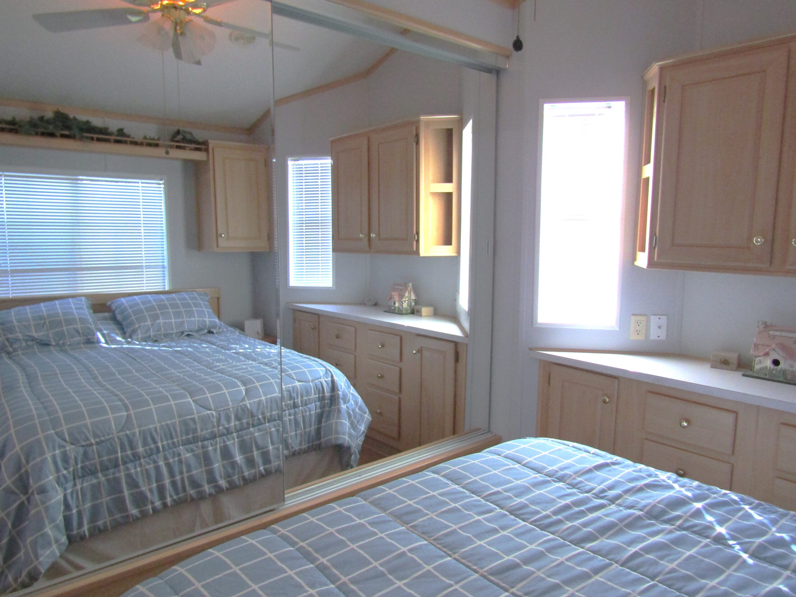 - Queen Bedroom w/Mirrored Closets, Built-In Dresser, & Upper Cabinets