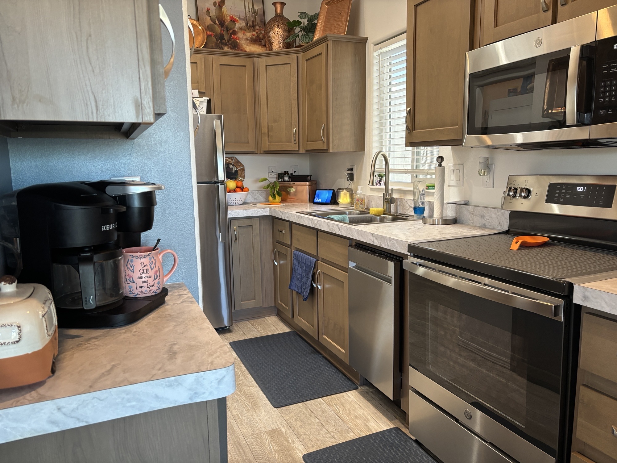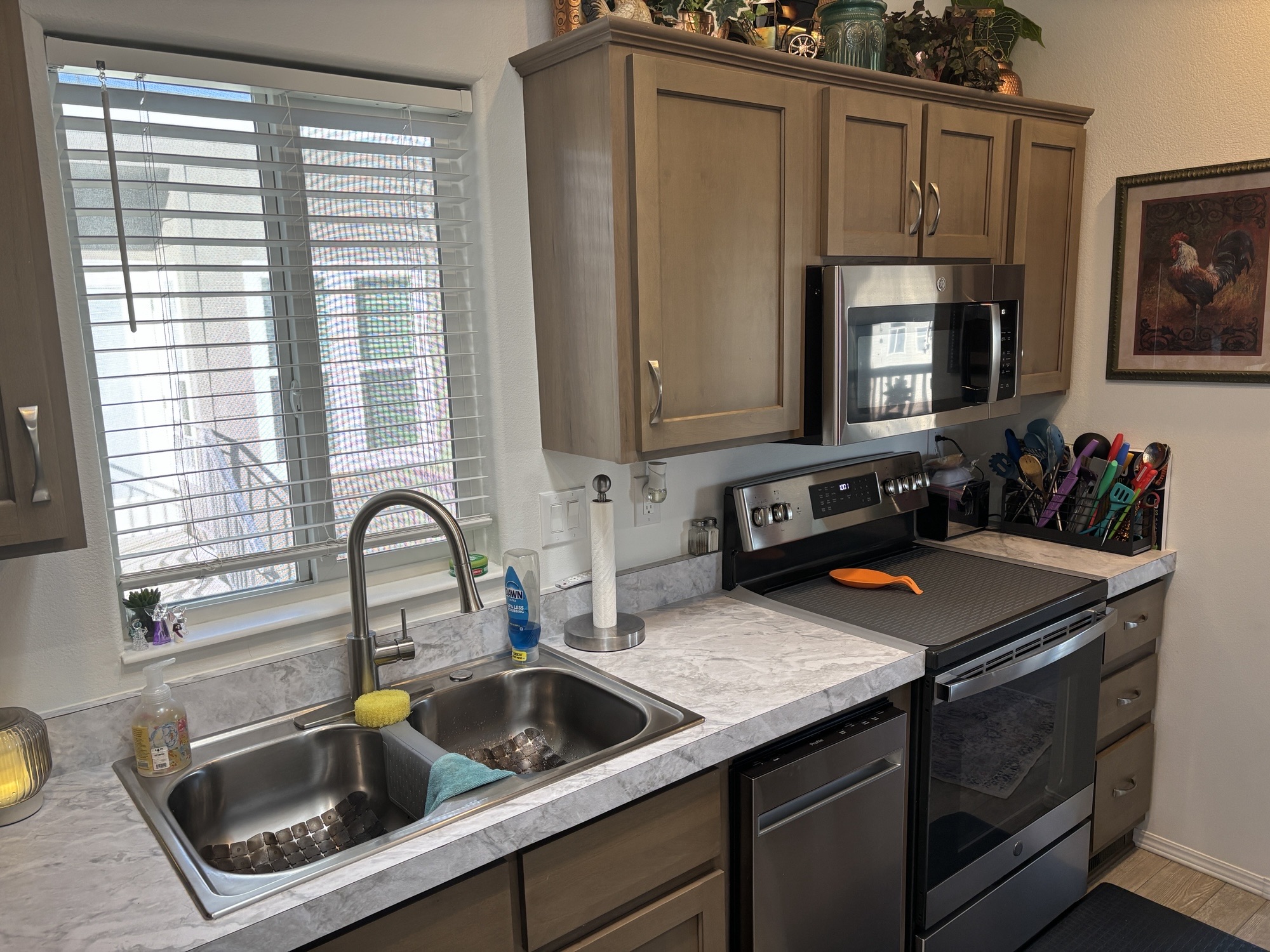 • Modern Pass-through Kitchen w/Stainless Steel Appliances + Dishwasher