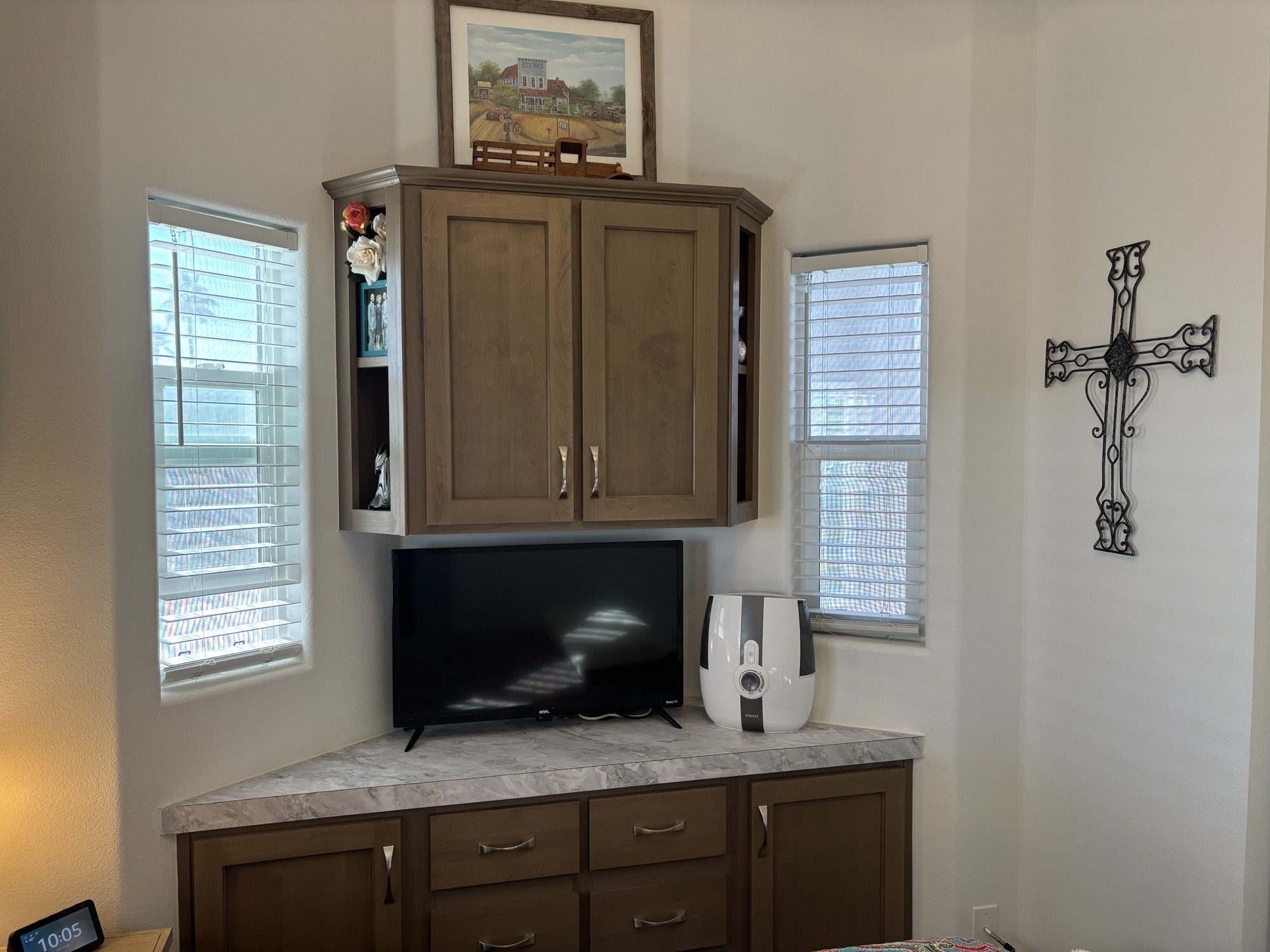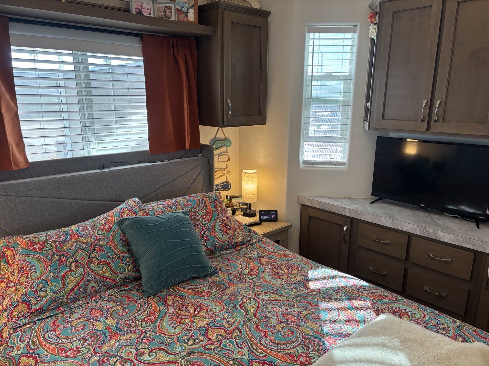 • Queen Bedroom w/Mirror Closet w/Built-In Cabinets and TV