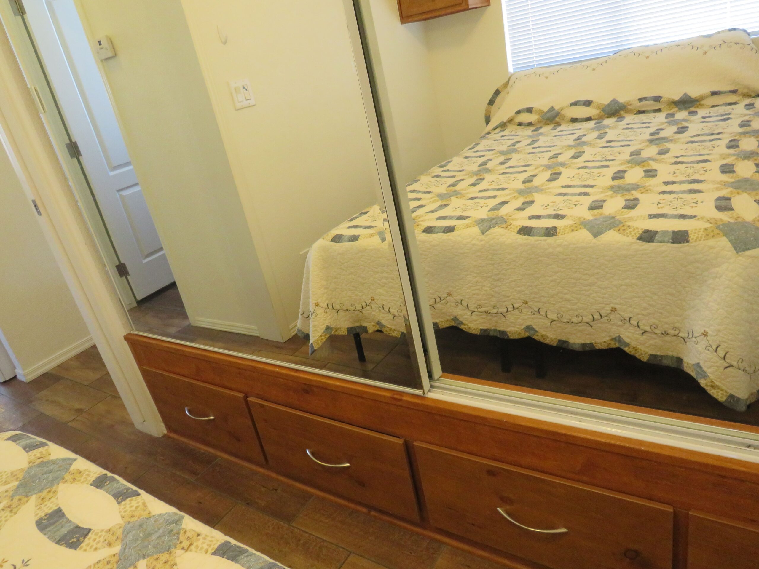 - Queen Bed w/Full Mirrored Closet, Built-In Dresser, & Upper Cabinets/Drawers