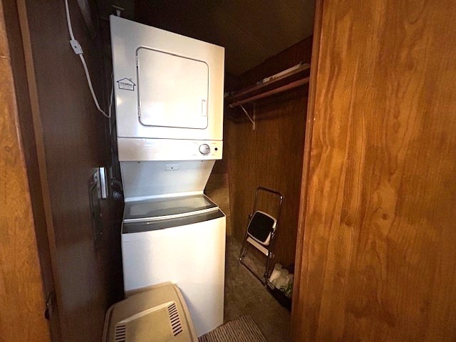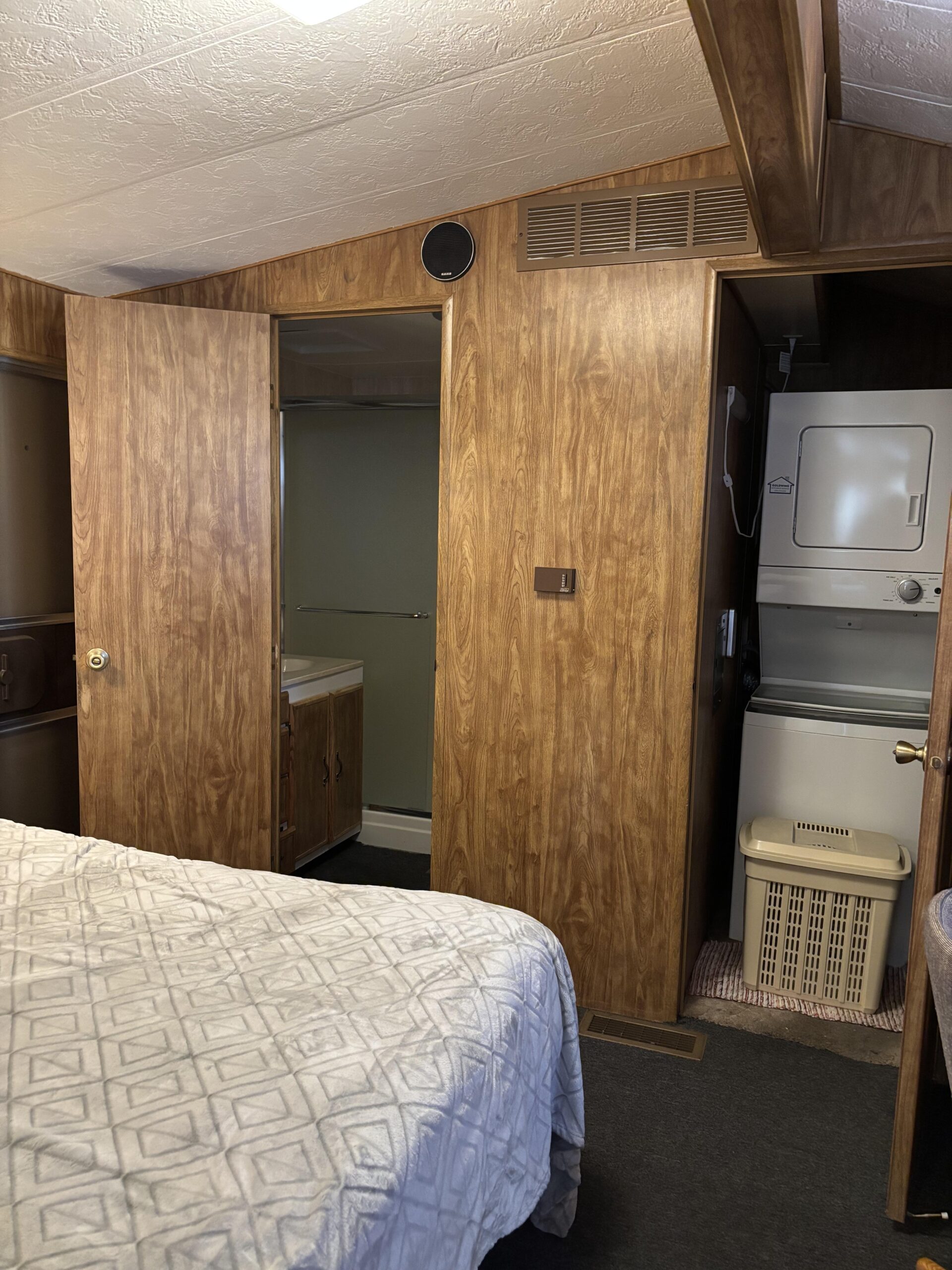 • Shed w/Storage, Work Bench, & Stackable Washer & Dryer
