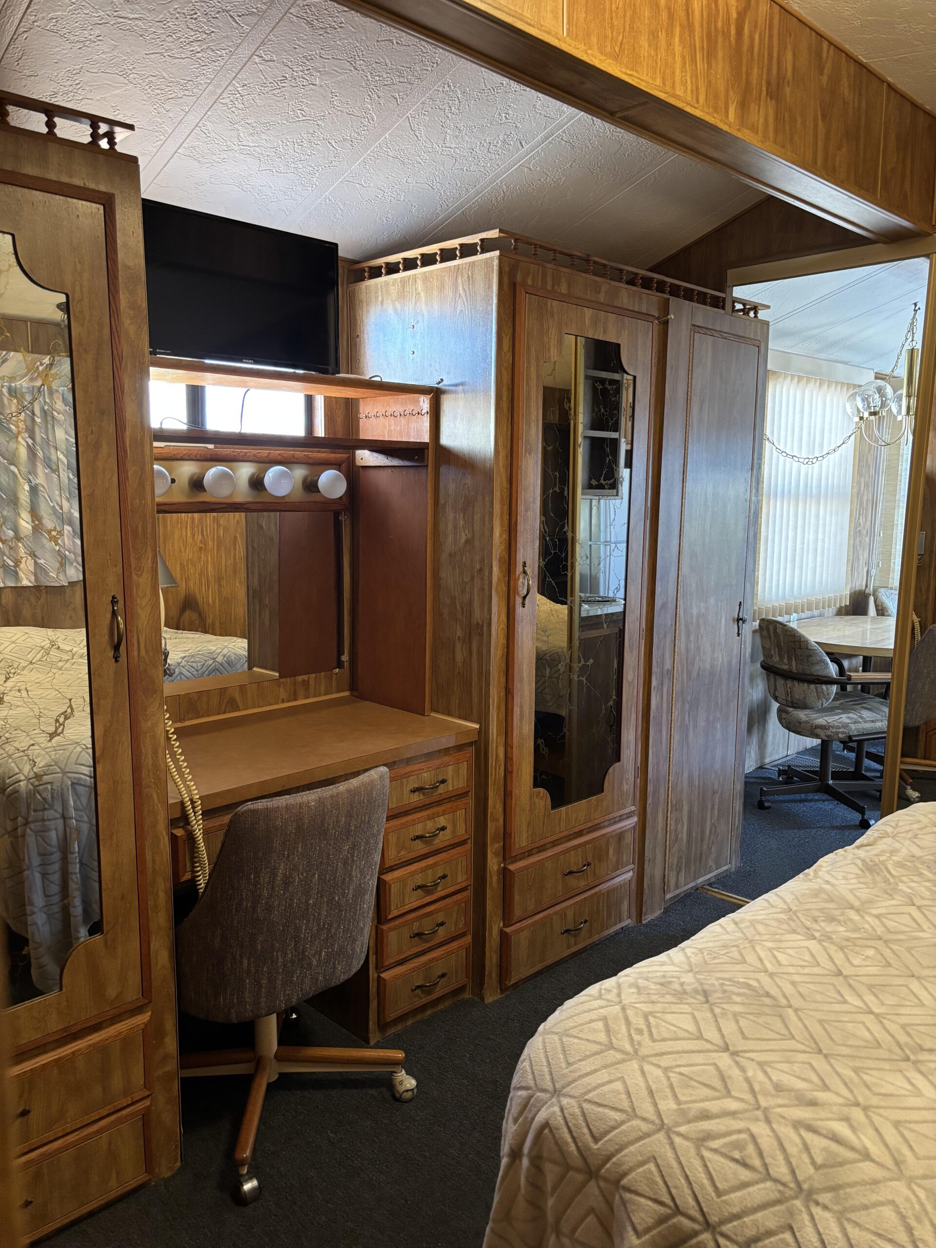 • Queen Bedroom w/Built-In Counter w/Drawers, Vanity, & His and Hers Closets