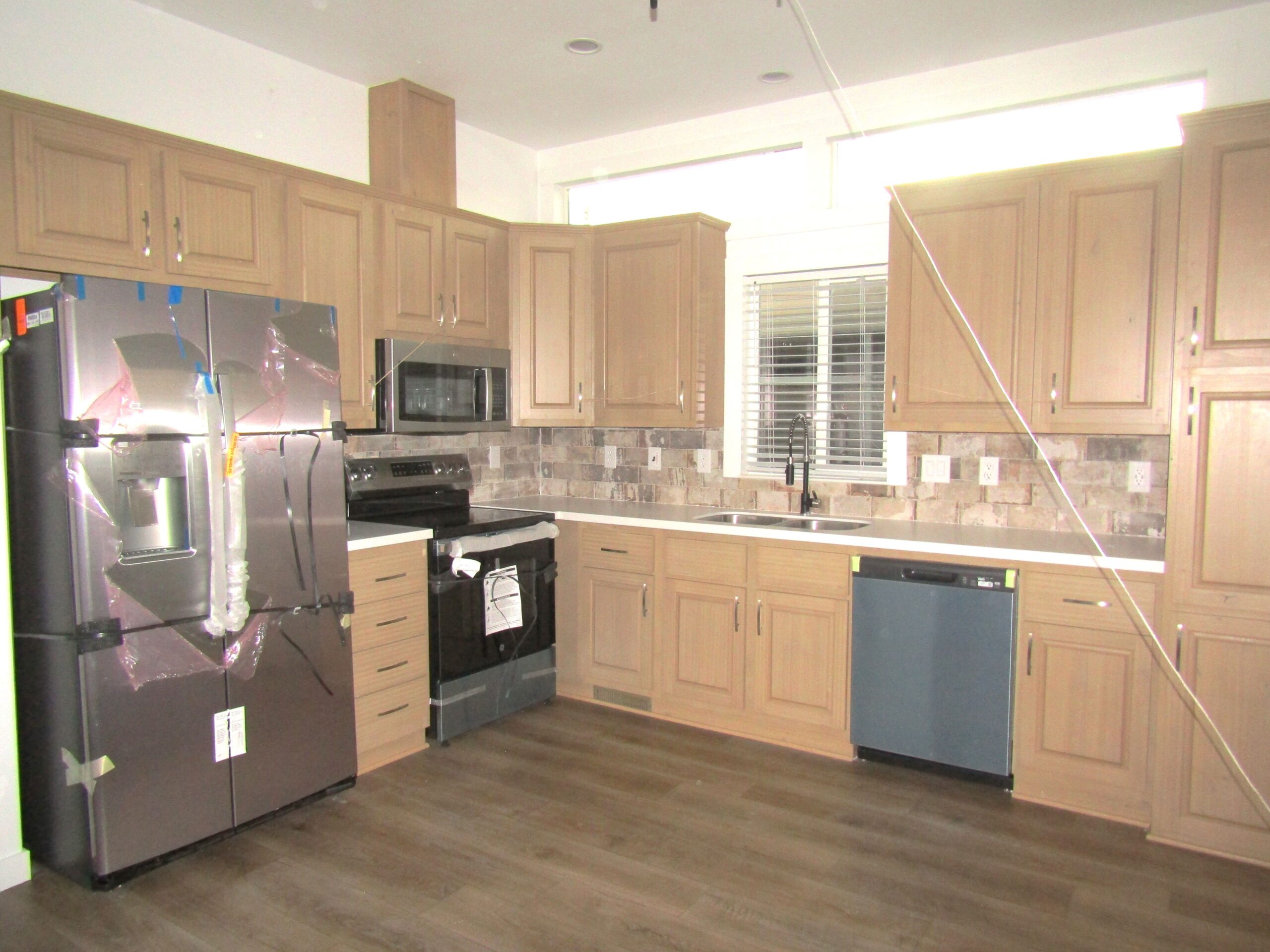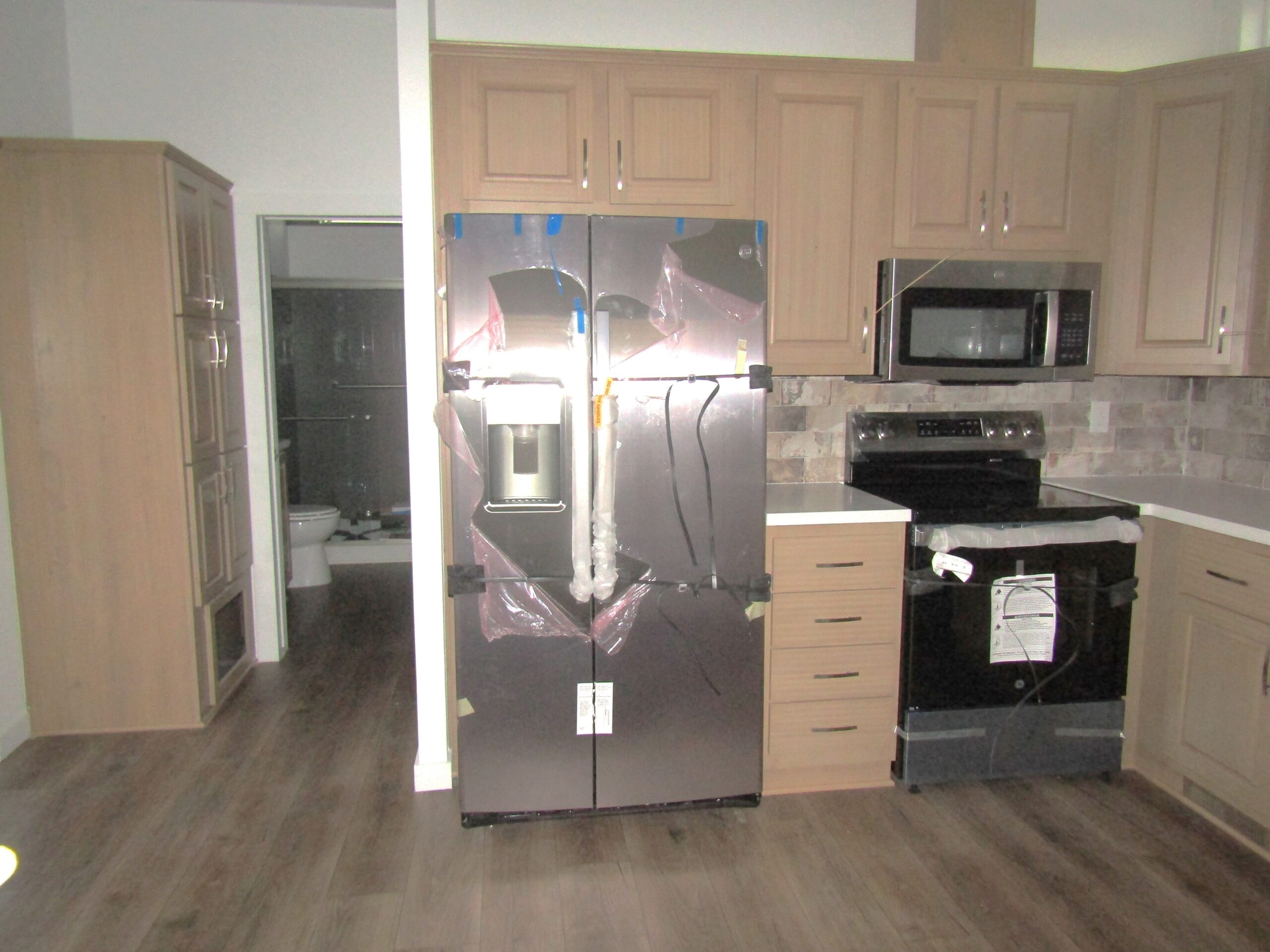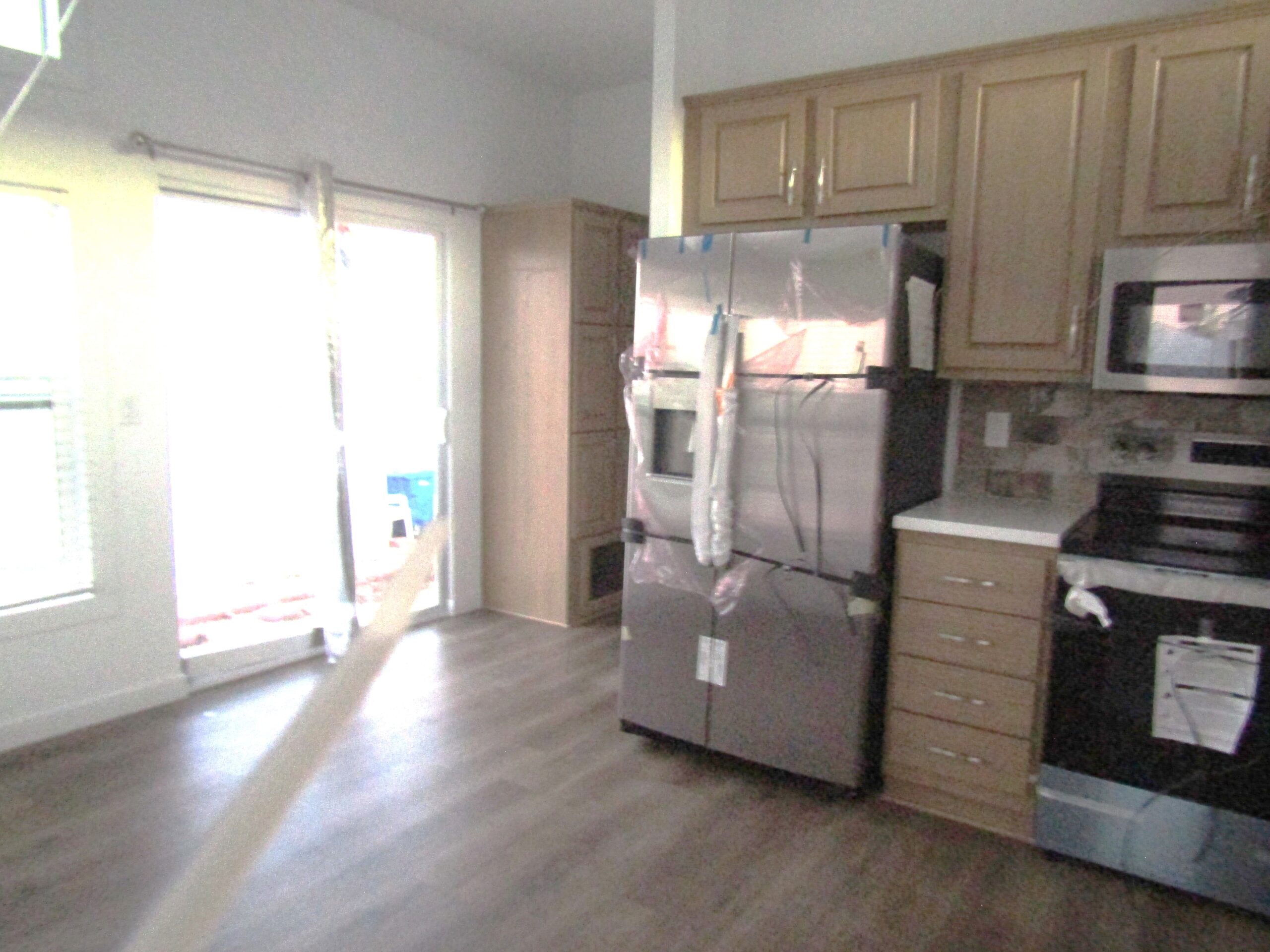 • Open L-Kitchen w/39” Cabinets w/Stainless Steel Appliances, Dishwasher, 22 CF Side-By-Side Fridge, Solid Surface Countertops, & Disposal