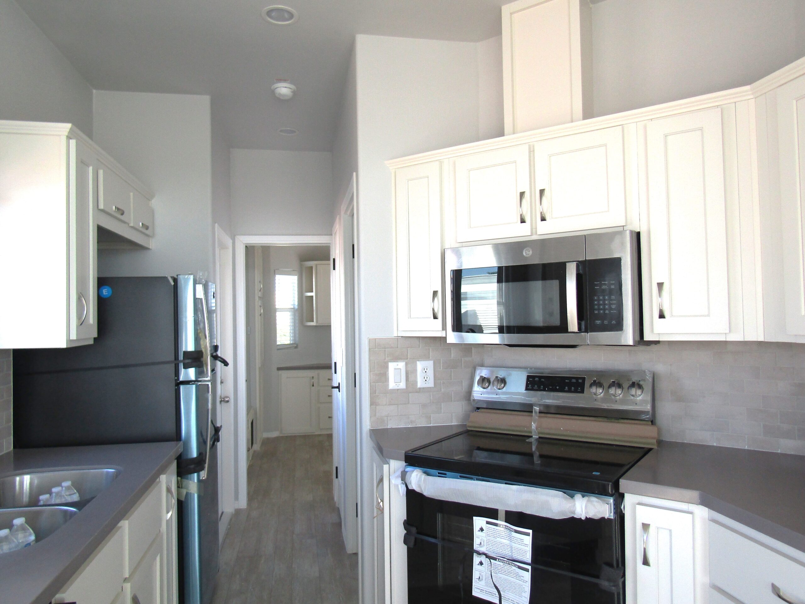 • Middle Gourmet Kitchen with 31” Cabinets, SS Appliances, Dishwasher, 17CF Fridge, Smooth Top Range, Loose Island, Solid Surface Countertops, Tile