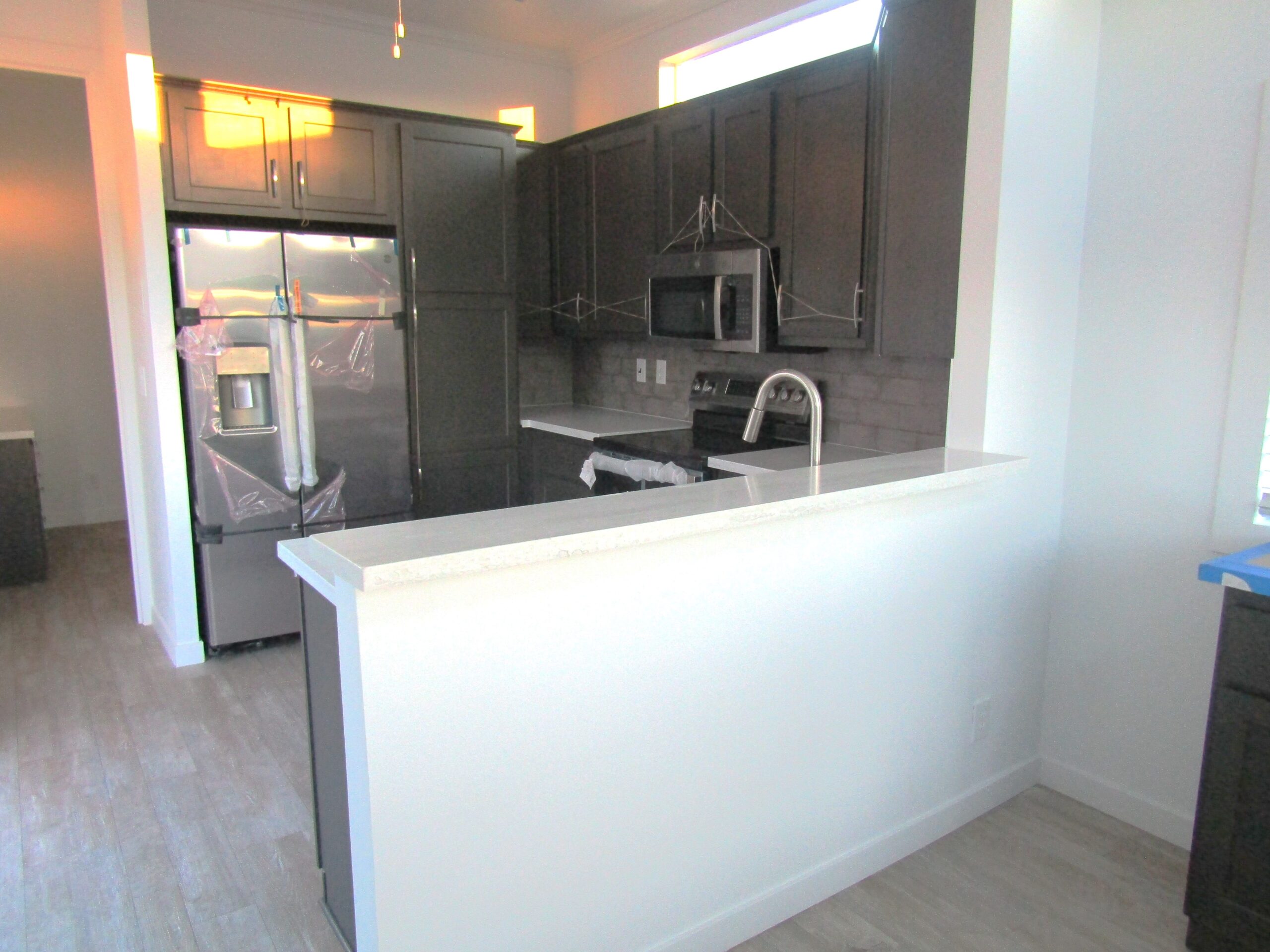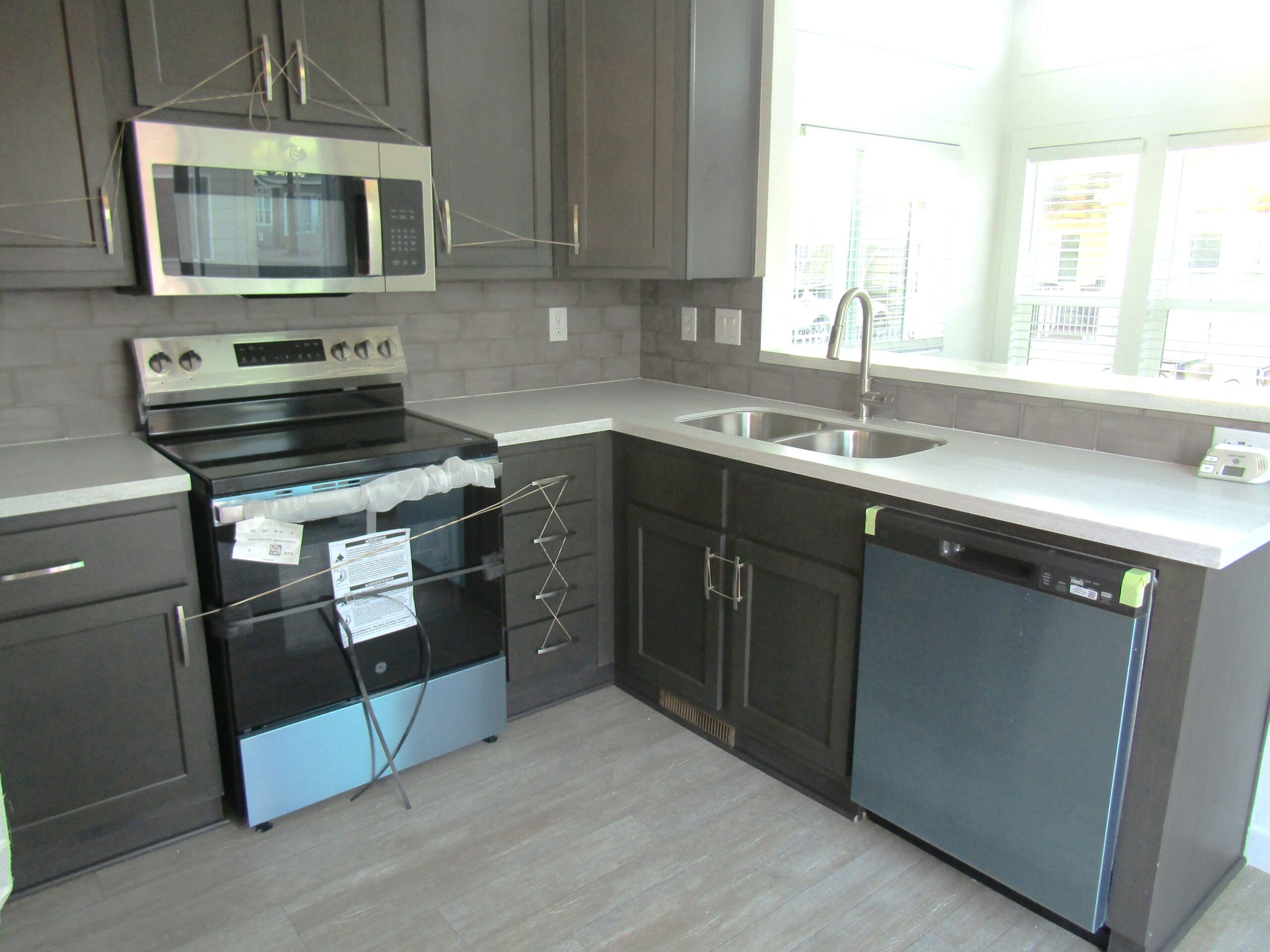 Middle Gourmet U-Kitchen with 39” Cabinets, SS Appliances, Dishwasher, 22CF Side-By-Side Fridge, Smooth Top Range, Loose Island, Solid Surface Countertops, Tile Backsplash, Lazy Susan, & Garbage Disposal