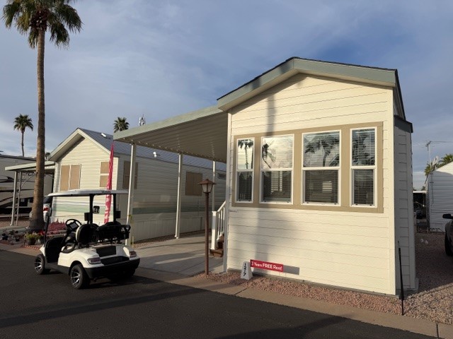 Our east-facing park model has shaker cabinets, washer & dryer hookup, walk-in shower, and a 7-year warranty. It’s like hitting the jackpot of home features!
