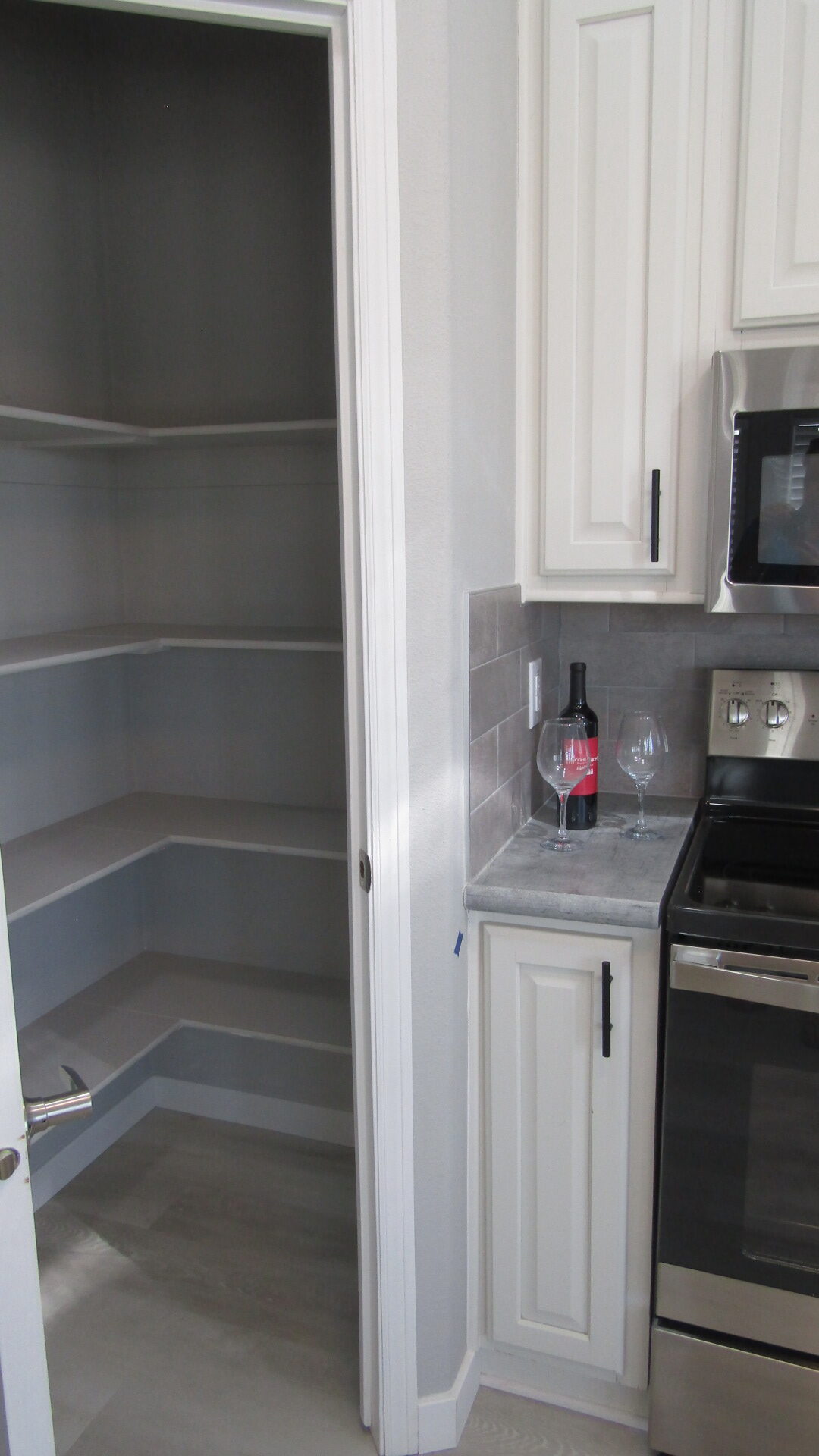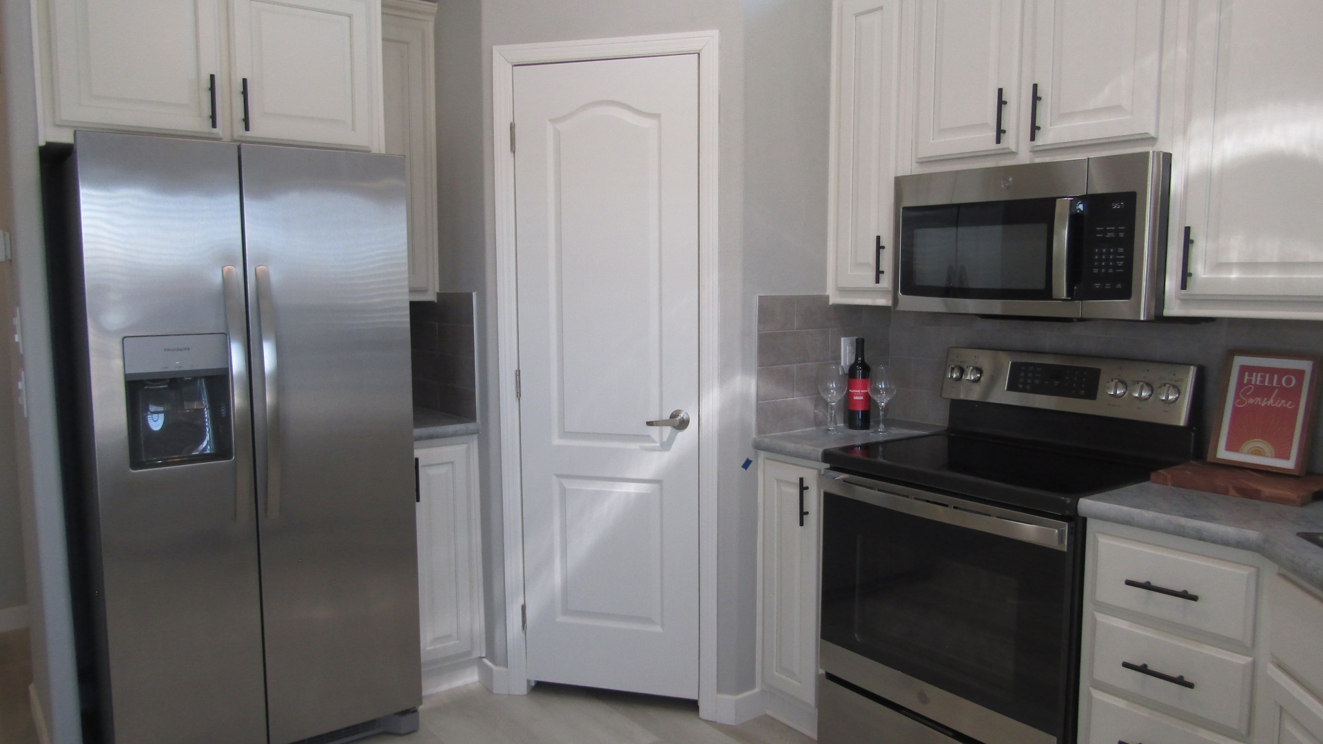 - Side/Front Gourmet Kitchen w/39” Cabinets, Stainless Steel Appliances, Dishwasher, 22 CF Side-By-Side Fridge, Solid Surface Countertops, & Disposal, & Full Walk-In Pantry