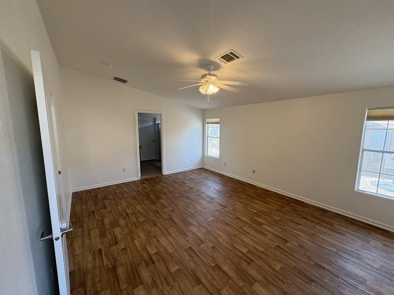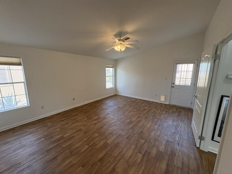 You’ll feel right at home the moment you step inside this charming 2-bedroom, 2-bath residence, beginning with the inviting front porch that sets the tone. The spacious primary suite offers direct access to the beautiful back patio-perfect for enjoying peaceful mornings or relaxing evenings outdoors. The rear patio also offers a retractable remote operated awning. The en-suite bath features a step-in shower and a generous walk-in closet for added comfort and convenience.