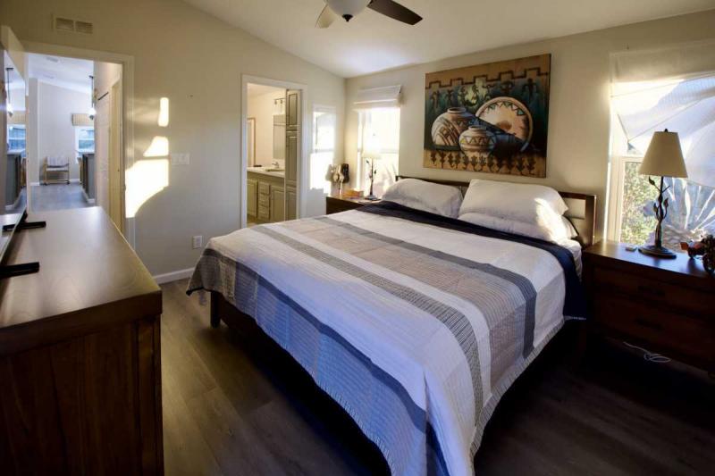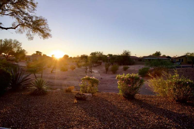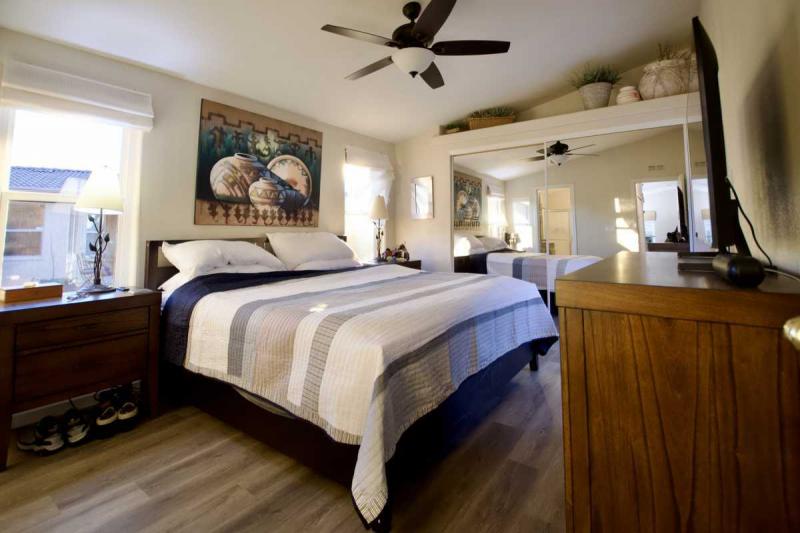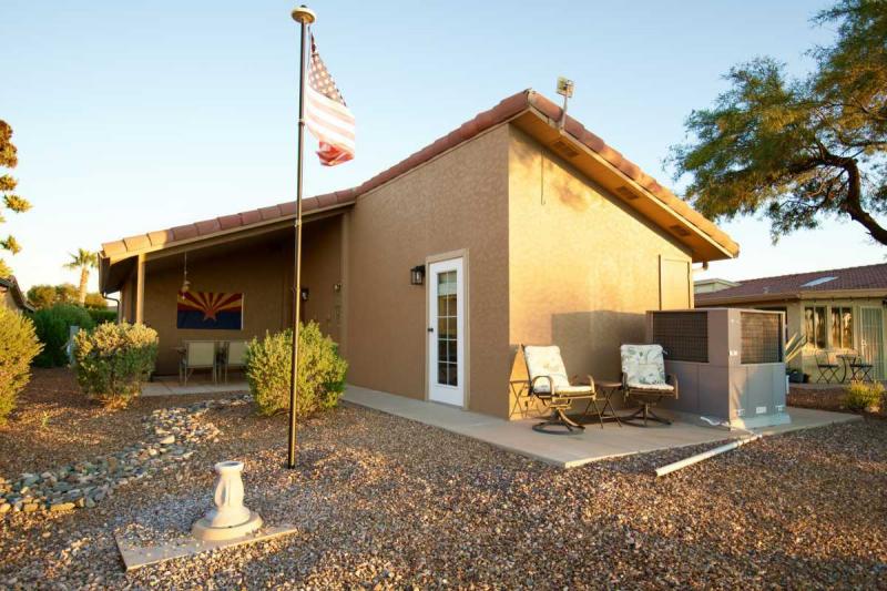 Step outside to your large covered back patio, the perfect place to relax and take in gorgeous sunset views and the peaceful privacy of the arroyo behind you. Need space for hobbies or storage? You’ll love the newly expanded, extra-large hobby room/shed with double doors off the carport. Additional upgrades in the last few years include a HVAC system, water heater, Anderson sliding door, and Milgard windows. The seller will also be painting the exterior soon – move right in and enjoy!