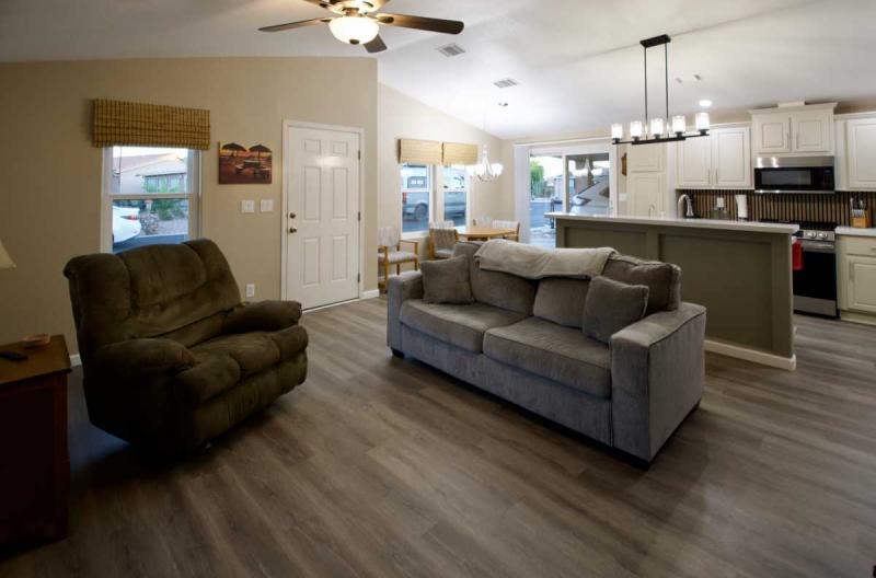 Welcome to your beautifully updated 1-bedroom, 1-bath home in one of the area’s most sought-after active adult communities! Enjoy an open-concept floor plan featuring a spacious living, dining, and kitchen area with brand-new luxury vinyl flooring, fresh interior paint, new quartz countertops and appliances, and a modern living room accent wall that adds style and warmth. Added bonus is that it is coming furnished! Just pack your bags and start living the dream!