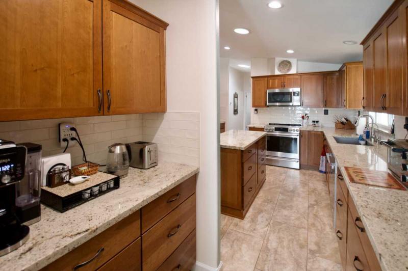 Inside, over $130,000 in upgrades make this home truly move-in ready. The designer kitchen features custom cherry cabinets with soft-close drawers and gorgeous granite countertops, which are also found in both updated bathrooms. No carpet anywhere-just clean, stylish flooring throughout.
