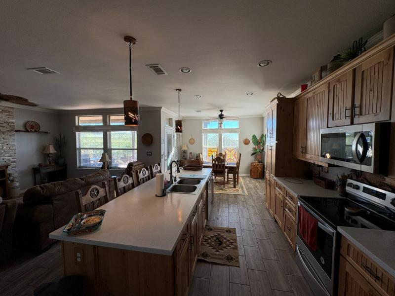 This 2021 Custom designed home has an open floorplan starting from the living space all the way through the kitchen for easy entertainment. Home is 2 bedroom – 2 bath plus a den and a 2 car garage. The kitchen cabinets and countertops have been updated and are a must see. The outdoor views are simply spectacular! Back patio is right on the desert, and the front bedroom has a great view of the Superstition mountains!!! So if you enjoy peace and tranquility along with beautiful views of nature, this is your home. Come see soon!