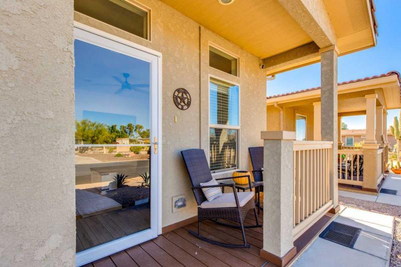 The large backyard and screened in porch offers a peaceful setting with breathtaking views of the Superstition Mountains-your private retreat right at home.