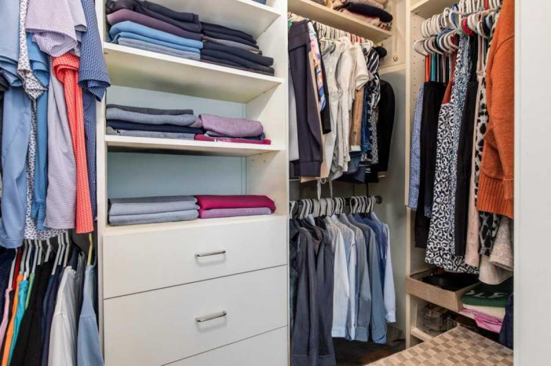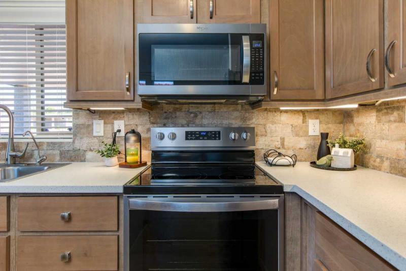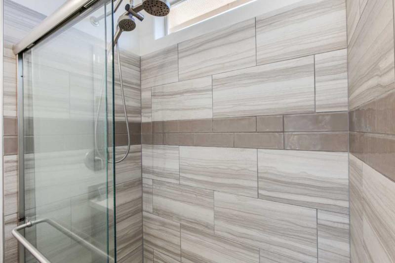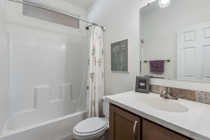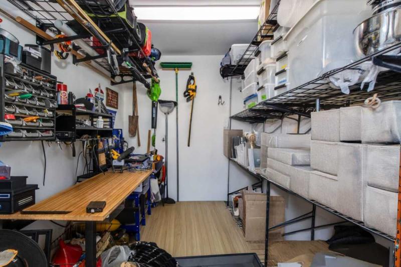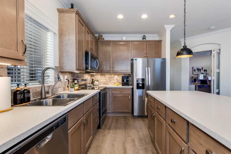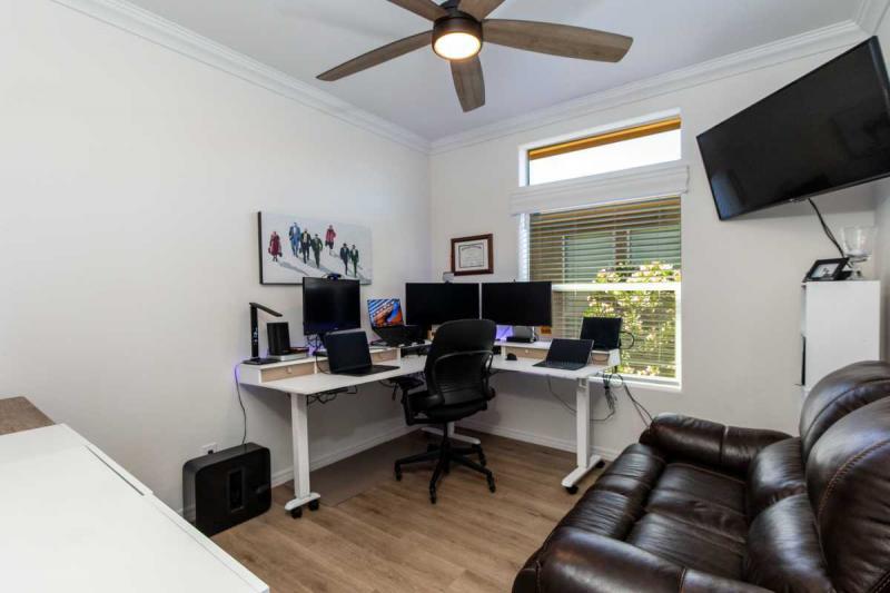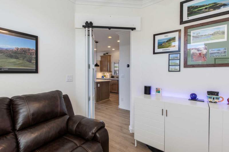 Both bedrooms are equipped with custom closet organization systems from Closets by Design, maximizing storage and style. The office/den is enhanced with a stunning modern style bifold barn door, perfect for privacy without sacrificing charm.
