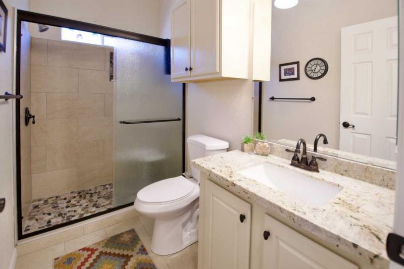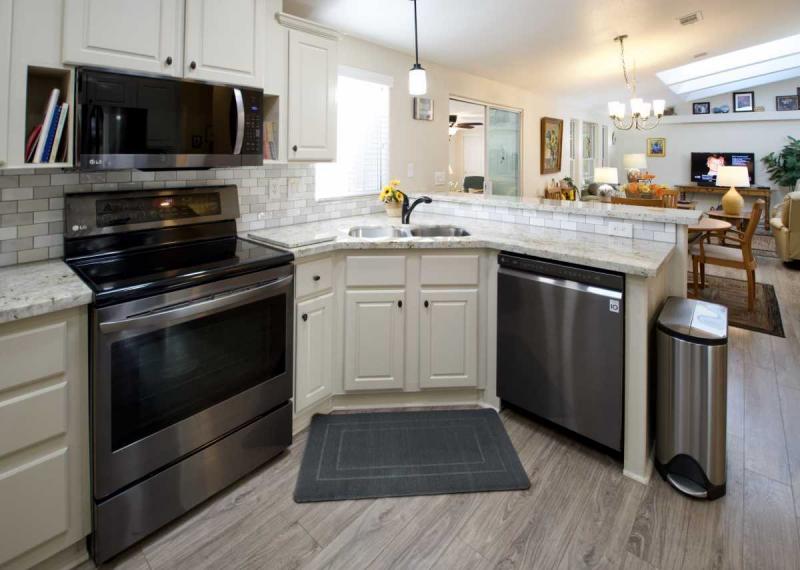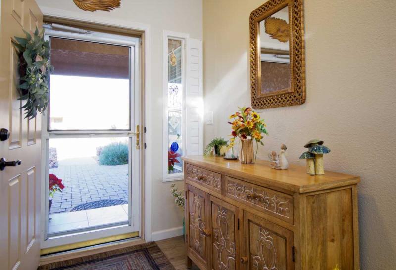 The spacious Arizona room includes a closet and offers flexible living space – ideal as a third bedroom, home office, hobby room, or guest retreat. Just off the Arizona room, you’ll find a covered back porch, providing another relaxing outdoor space to enjoy Arizona’s beautiful weather.