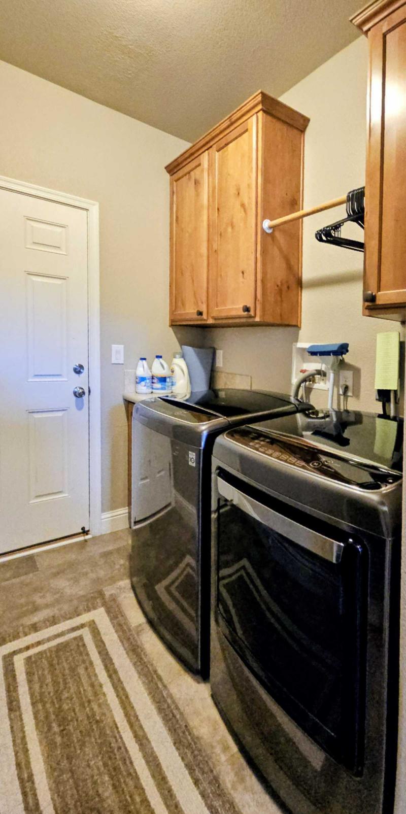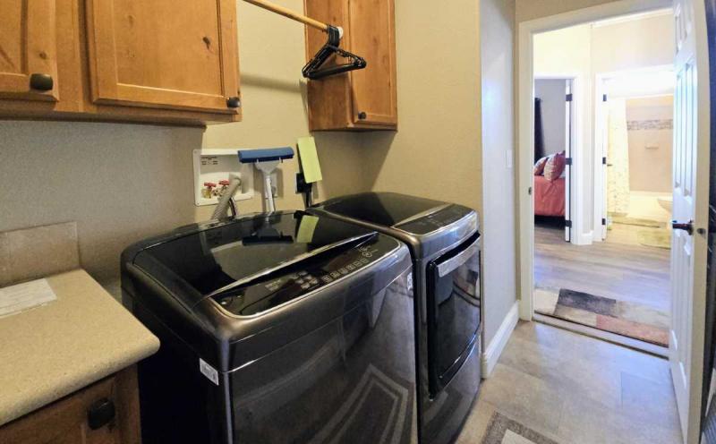 The attached two-car garage is another standout feature, complete with a workbench and shelving unit-ideal for tools, gardening supplies, seasonal décor, or additional household storage.