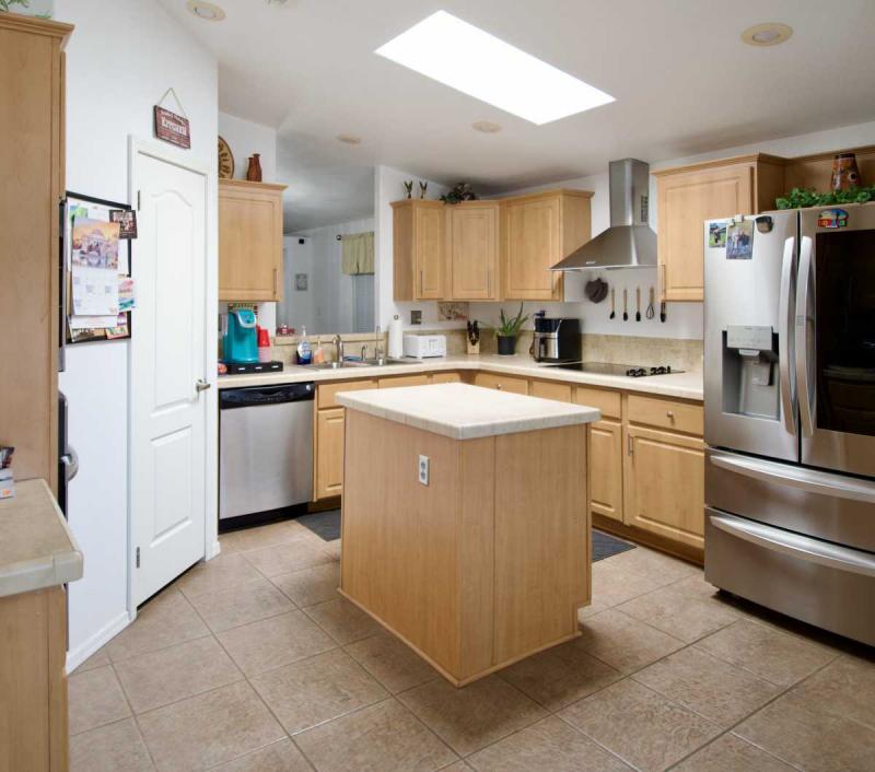 The heart of the home is a large gourmet kitchen designed to impress, featuring built-in appliances, a stovetop, range hood, prep island, and a cozy eat-in nook-perfect for morning coffee or casual meals. While the kitchen offers a more private, separate feel, it includes a convenient pass-through opening to the dining area, creating connection while maintaining defined living spaces.