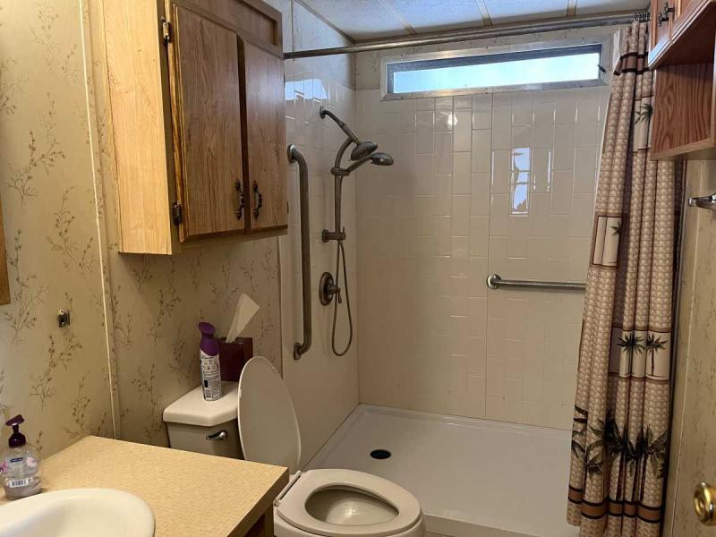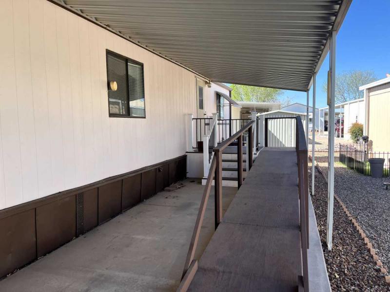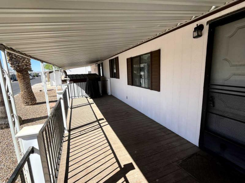 This 1986 2 bedroom Palm Harbor home is 910 square foot. Located on a corner lot you enter off a huge front porch. Imagine sitting out on that porch greeting your neighbors or just enjoying the beautiful Arizona weather. Coming into the house you first enter the large living room and adjoining kitchen. Off the kitchen is a laundry room with washer and dryer. Towards the rear of the home is the Master bedroom and bath. The Master Bathroom has recently been renovated and now has a full size walk in shower. The home also has a newer air conditioning unit installed that economically cools the entire home. This well taken care of home was just listed and is ready for it’s new owner. Contact us to schedule a tour.