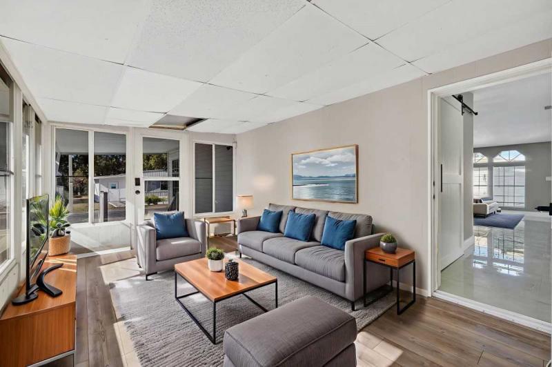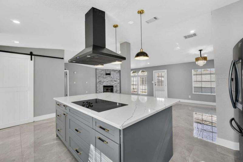 Open & Airy Living Spaces: The open floor plan is flooded with natural light, creating an inviting atmosphere for family gatherings and daily living. New, high-quality flooring and a fresh, neutral color palette create a sense of expansive space throughout.