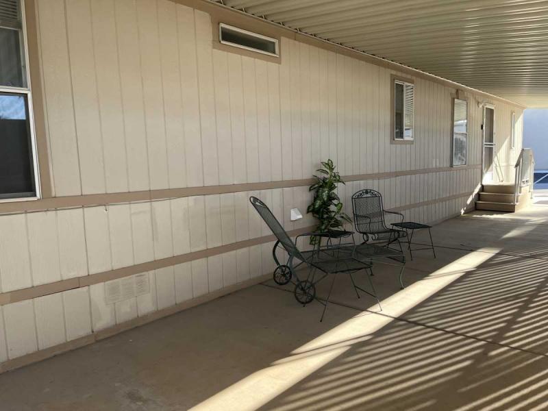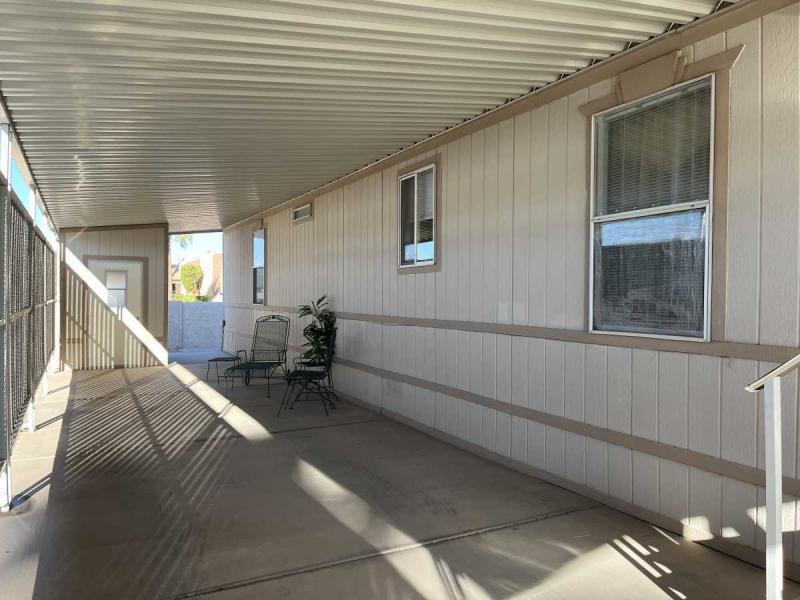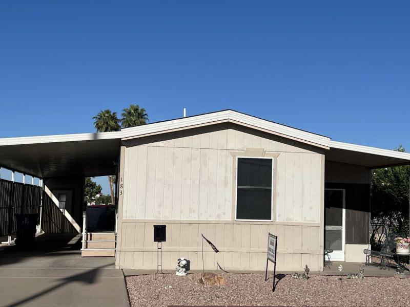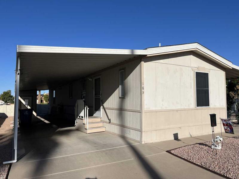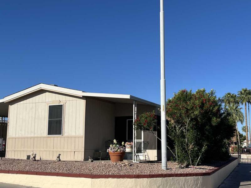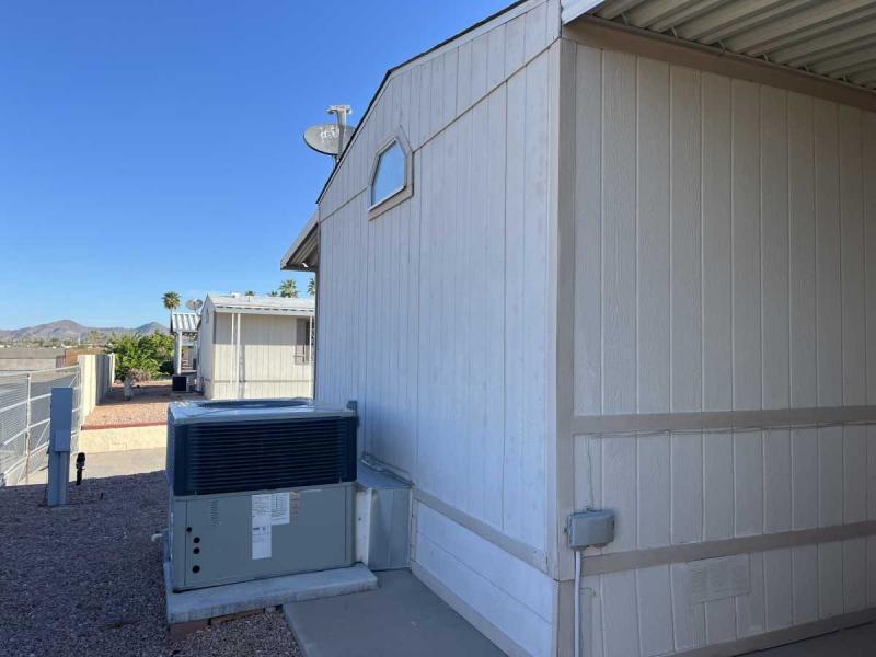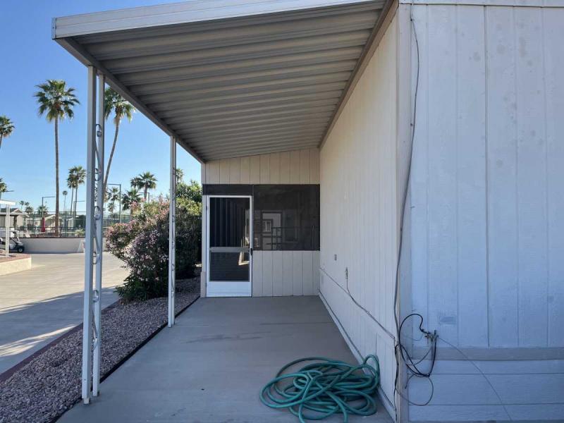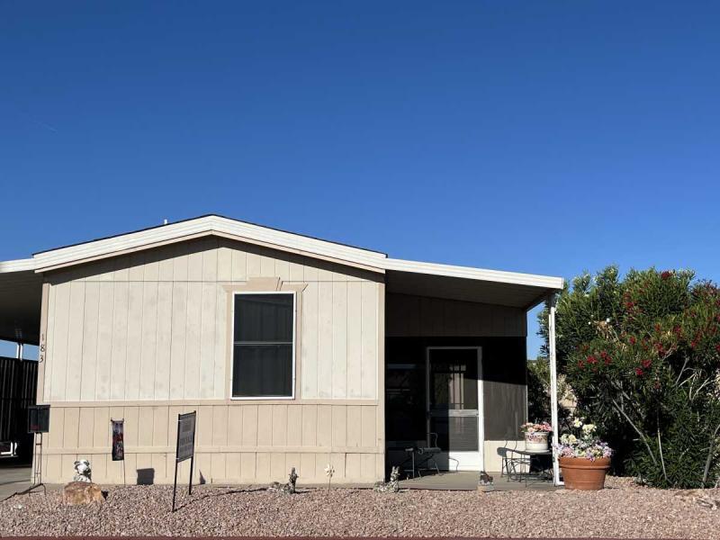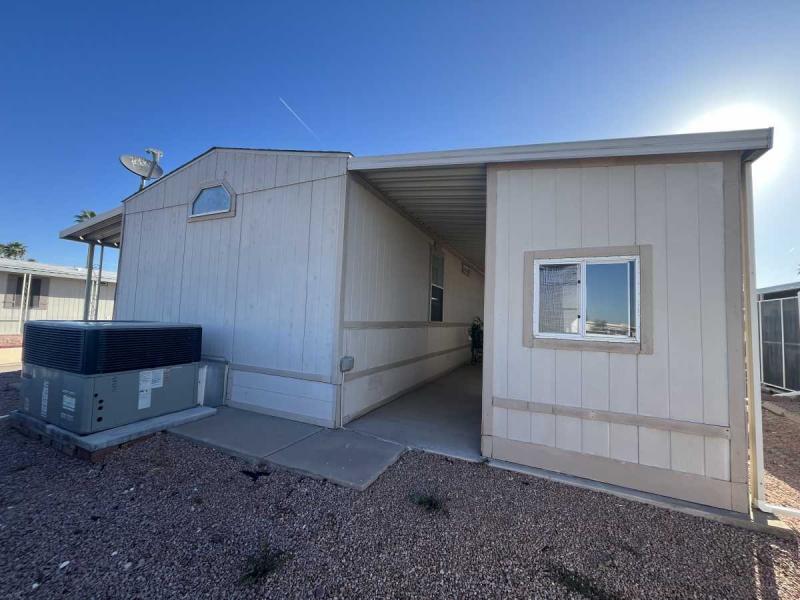 Beautiful Wood-look Laminate Flooring plus Carpeting. SPACIOUS 2BR/2BA and ready for you to move-in home! Ample space in the Storage Shed for storage or workshops included! Cathedral Ceilings. Ceiling Fans. Outdoor patio areas including a screened-in patio are lovely to enjoy this beautiful Arizona weather. A/C unit works great! Covered patios. Plumbing, electric, gas all work great! Perfectly situated on the resort, Across the street from the community center – walking distance to the pool, community center and all amenities.