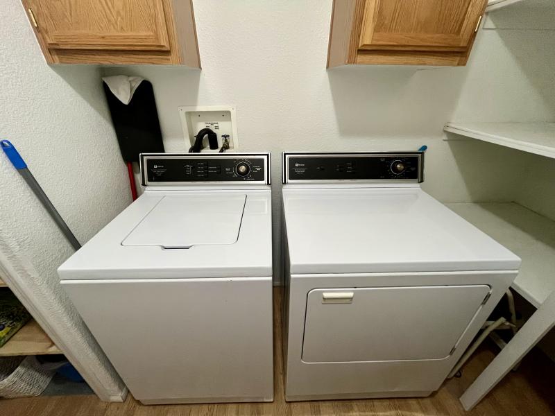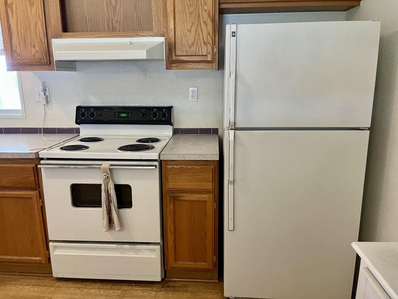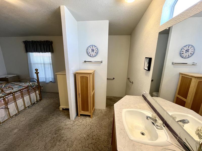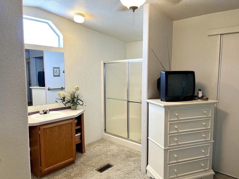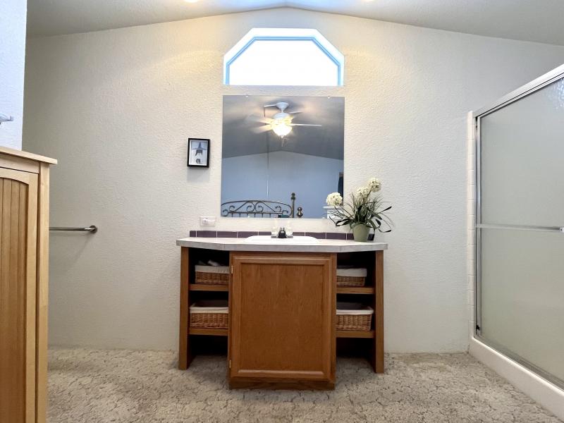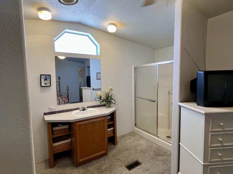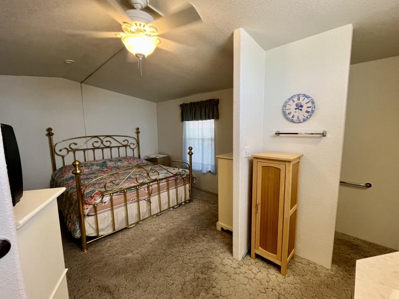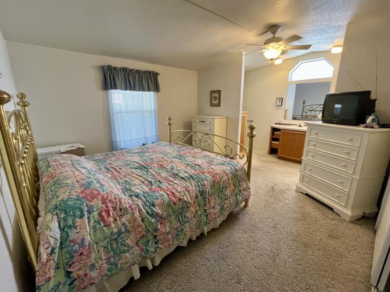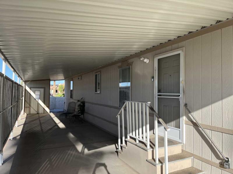 Beautiful Wood-look Laminate Flooring plus Carpeting. SPACIOUS 2BR/2BA and ready for you to move-in home! Ample space in the Storage Shed for storage or workshops included! Cathedral Ceilings. Ceiling Fans. Outdoor patio areas including a screened-in patio are lovely to enjoy this beautiful Arizona weather. A/C unit works great! Covered patios. Plumbing, electric, gas all work great! Perfectly situated on the resort, Across the street from the community center – walking distance to the pool, community center and all amenities.