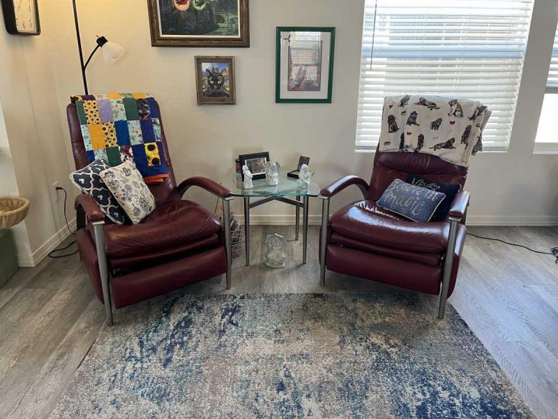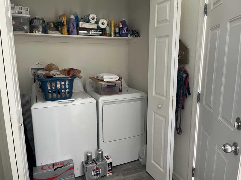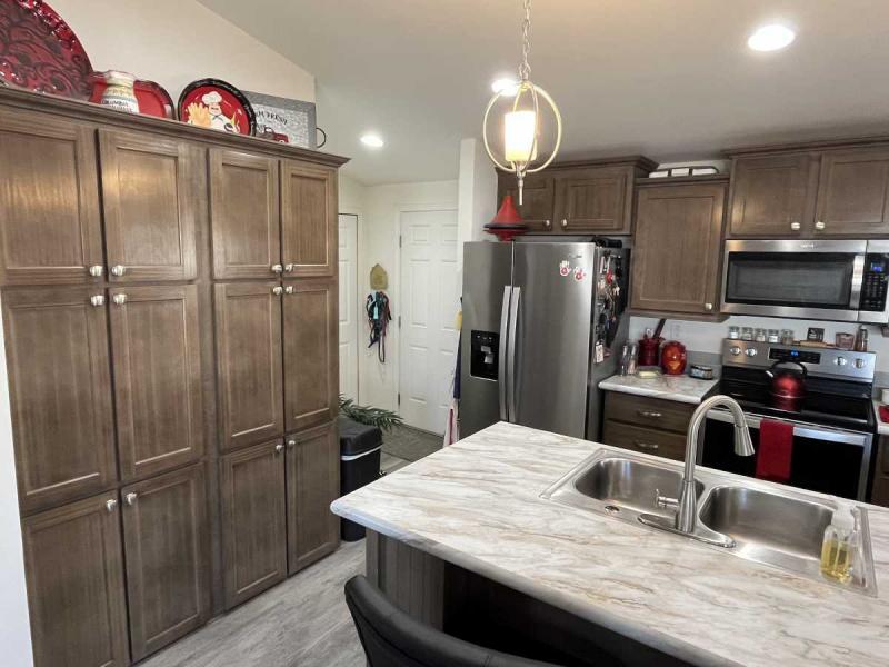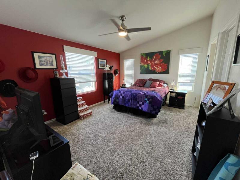 TAKE A LOOK! NEW Liuxury Vinyl Flooring in living areas!! Blink subscription for around $10./mo – camera system. Gold cart is negotiable. Ceiling fans already installed for your comfort on day one. 2 bedroom 2 bath beauty, you are greeted by a large open-concept floor plan that seamlessly connects the living, dining, and kitchen areas, creating a spacious environment perfect for both family living and entertaining. The gourmet kitchen features whirlpool stainless steel appliances, pendant lighting, a large center island, and ample cabinetry for all your storage needs. A charming second bedroom provides versatile space that can be tailored to your needs, serving as the perfect extension of your living area. The luxurious primary suite is a true retreat, complete with a walk-in closet and en-suite bathroom that boasts dual vanities and a separate glass-enclosed shower with bench. ENERGY EFFICIENT DUAL PANE WINDOWS! New fixtures. Modern lighting. 2021 water heater. 2021 roof! Energy efficient home with textured drywall and cathedral ceilings. Some Furniture Negotiable. Seller is offering $2,500 in flooring allowance to replce thye carpet in bedrooms.