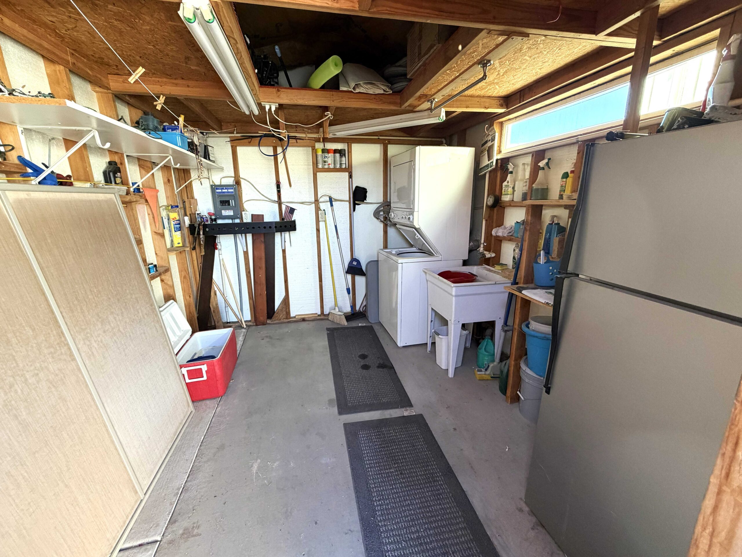 • Big shed with washer, dryer, extra fridge, and lots of room to store