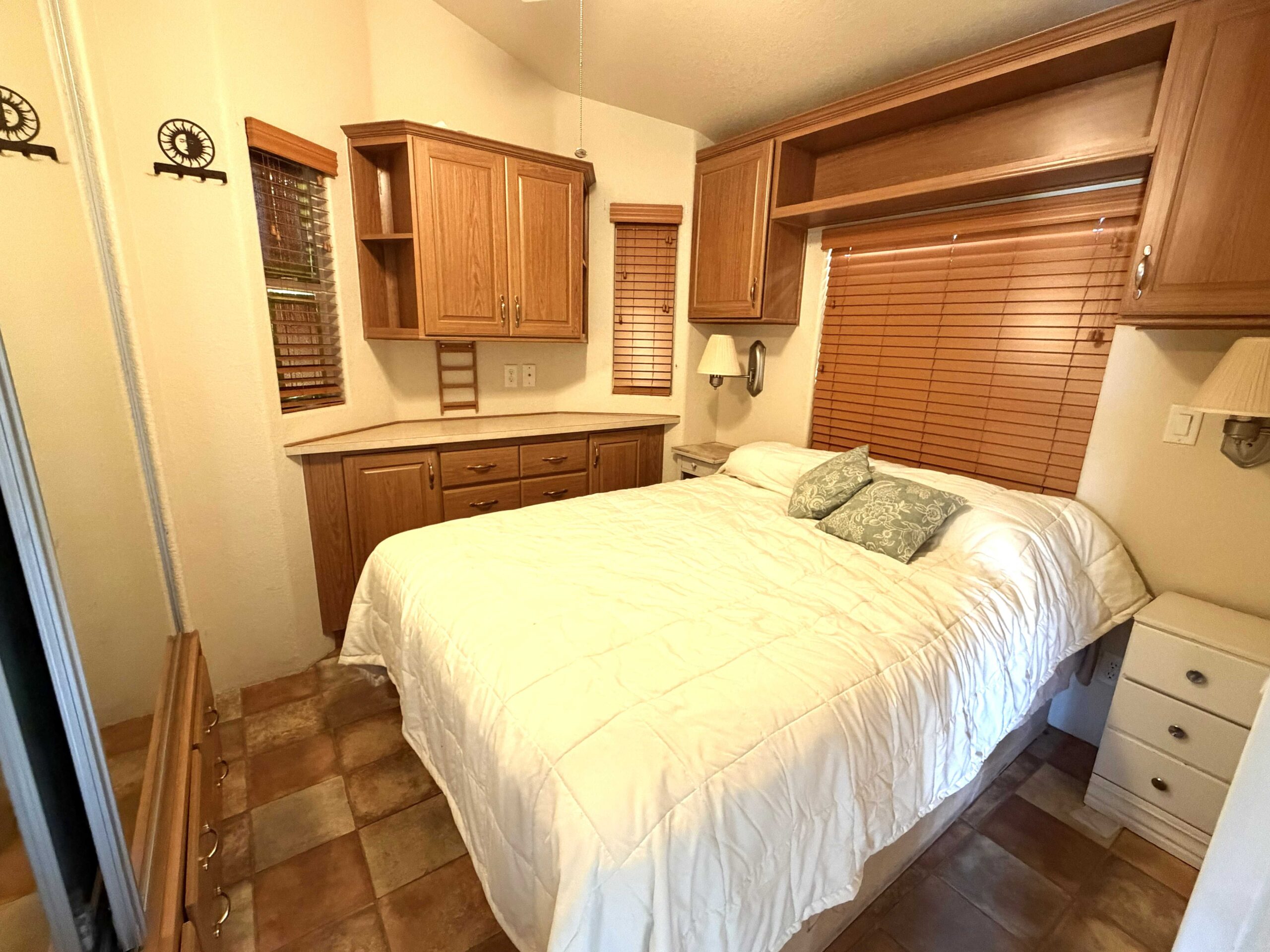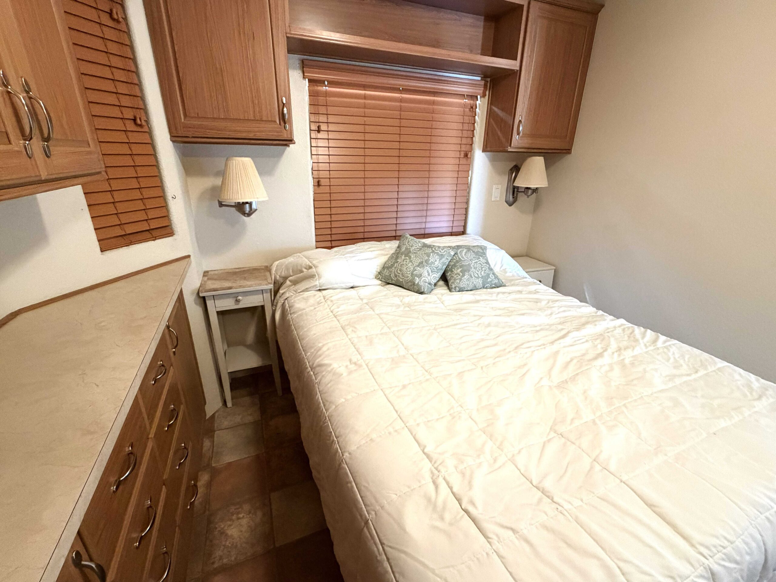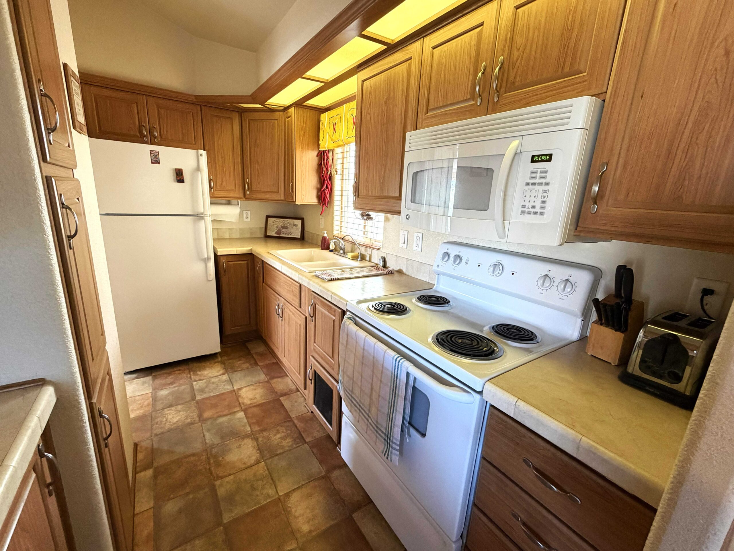 • Kitchen provides a full size fridge, electric stove and over the range microwave, TONS of storage, and RO system