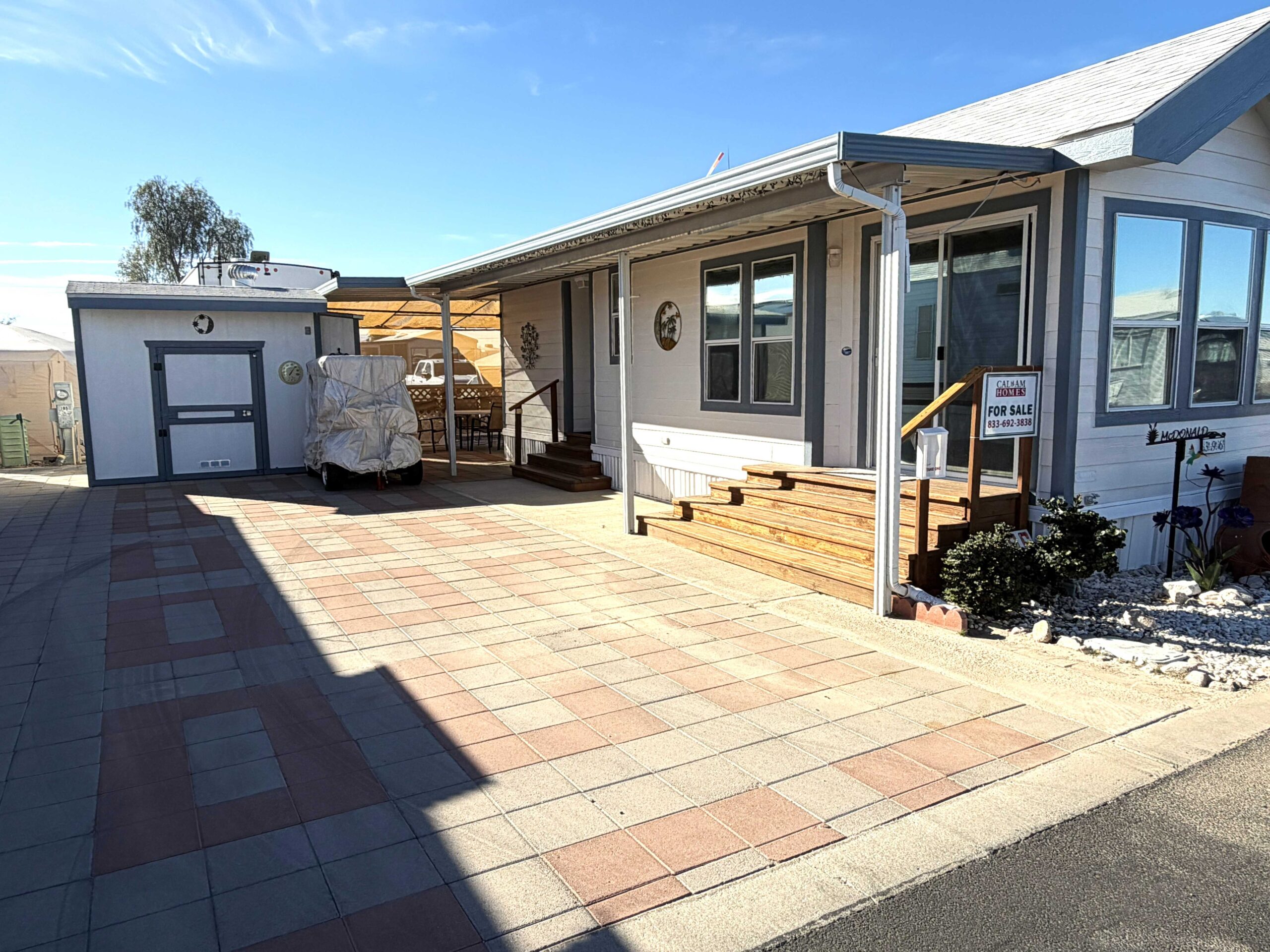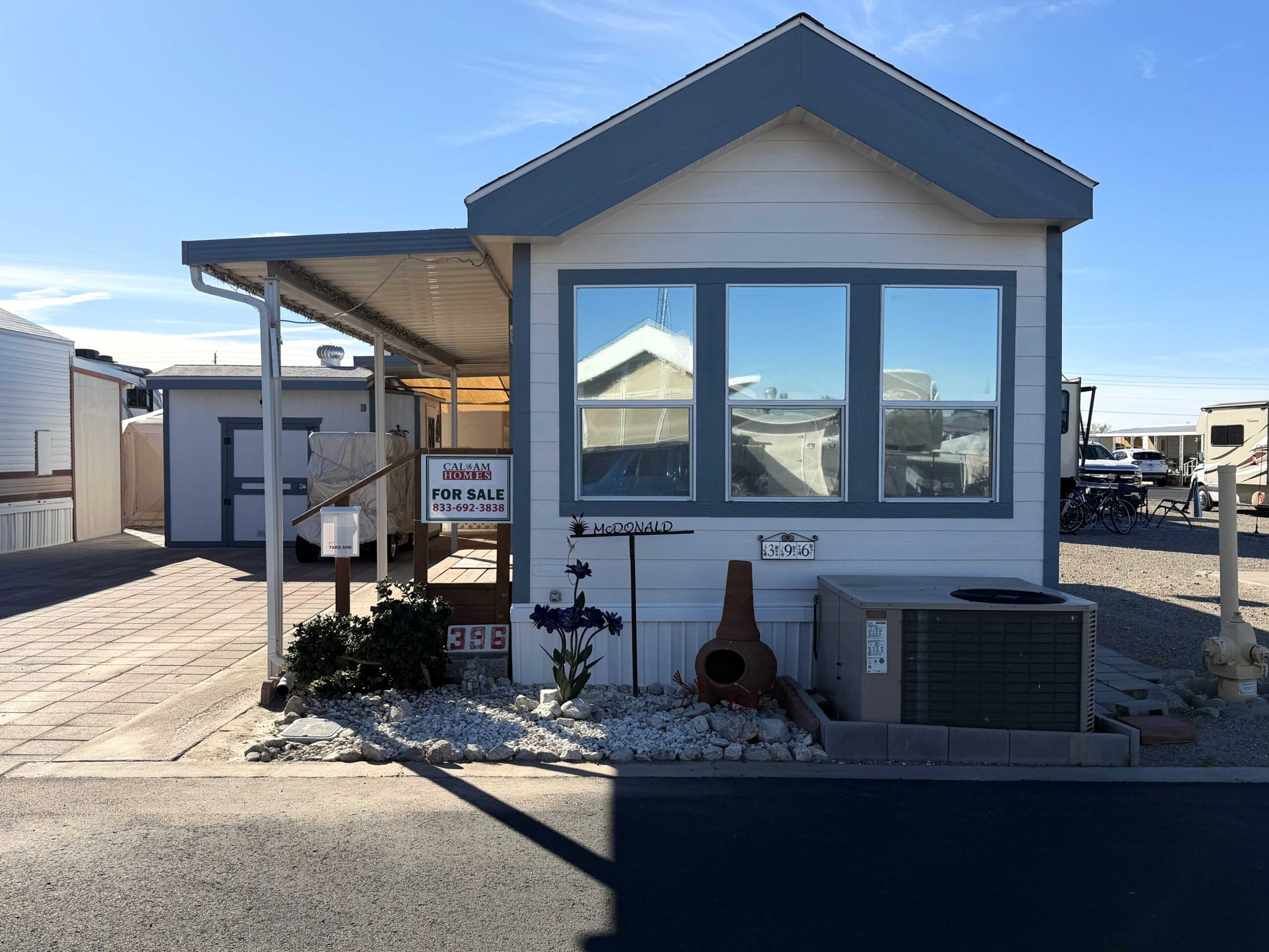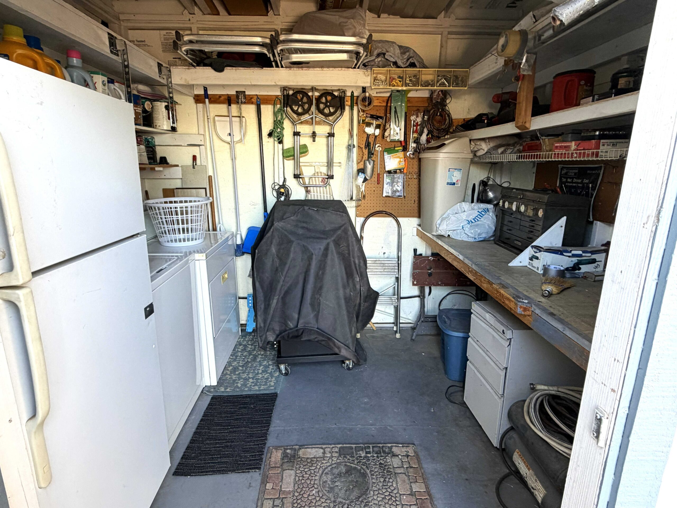 - Big shed with washer, dryer, and extra fridge