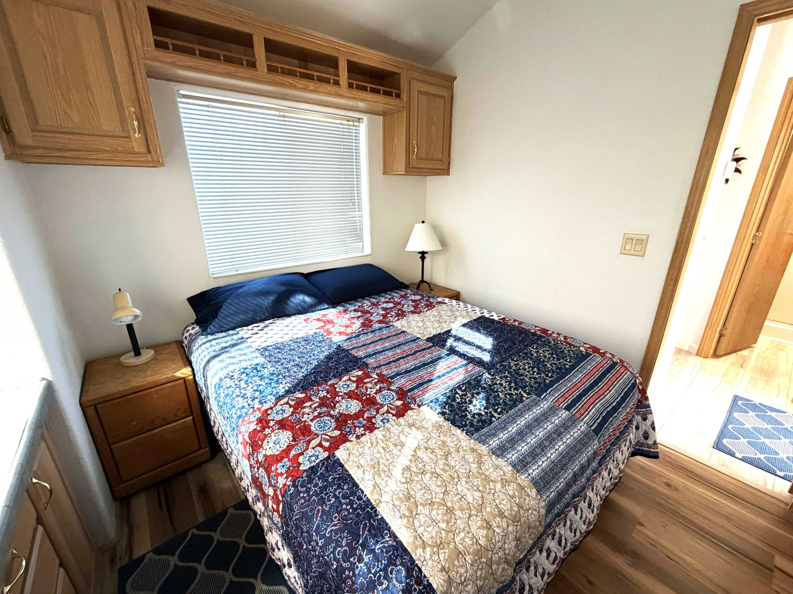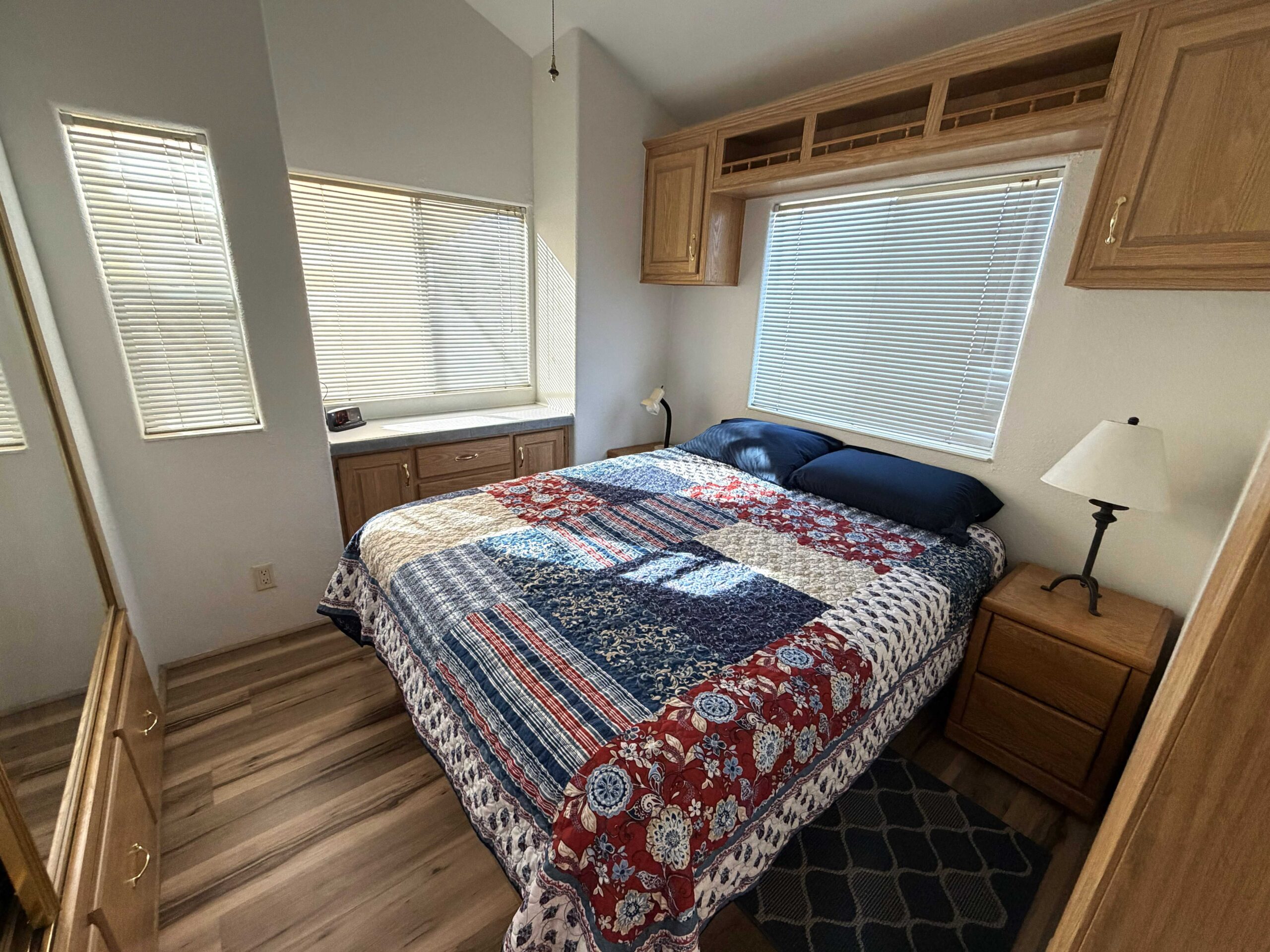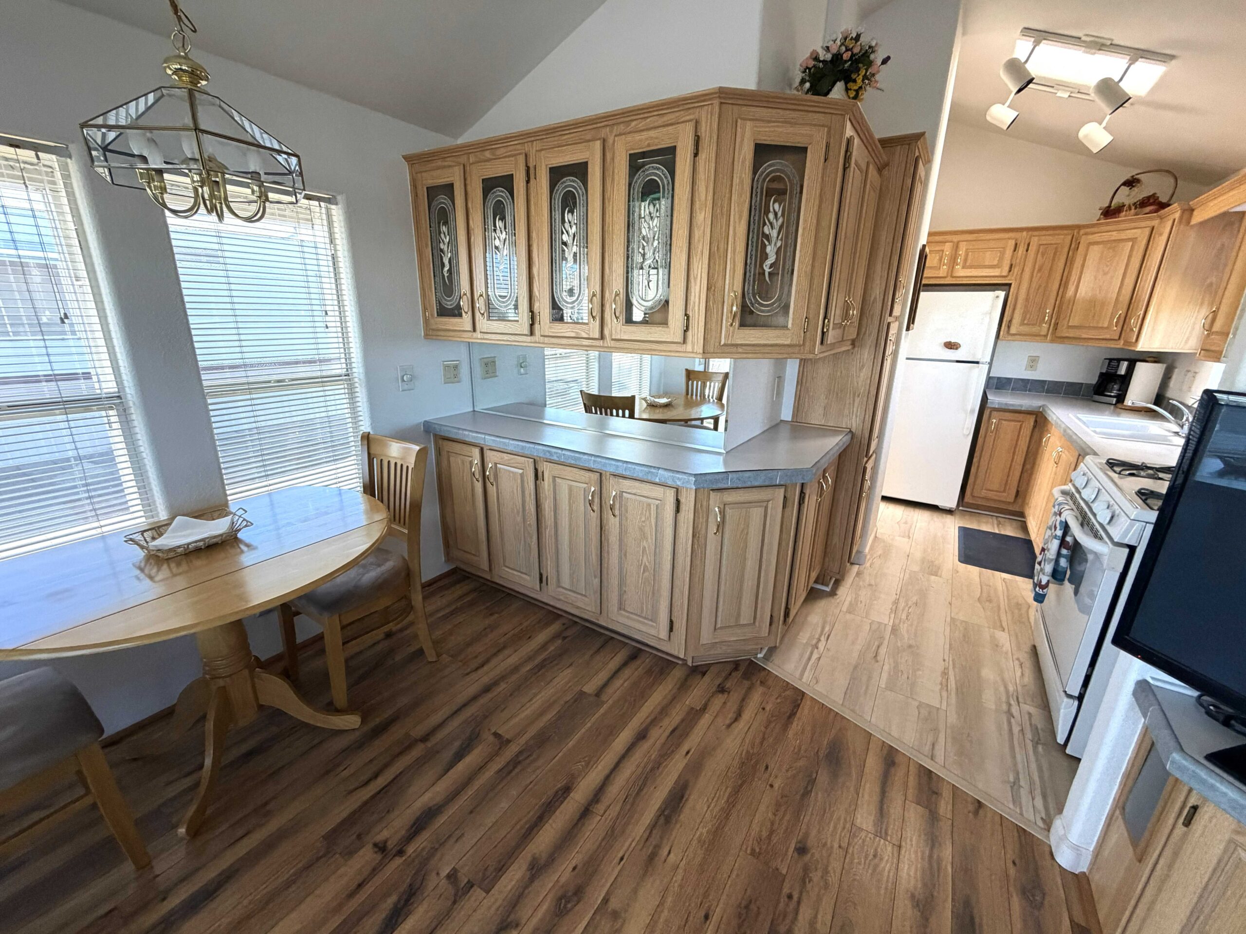- Plenty of cabinet space with a beautiful wrap bar