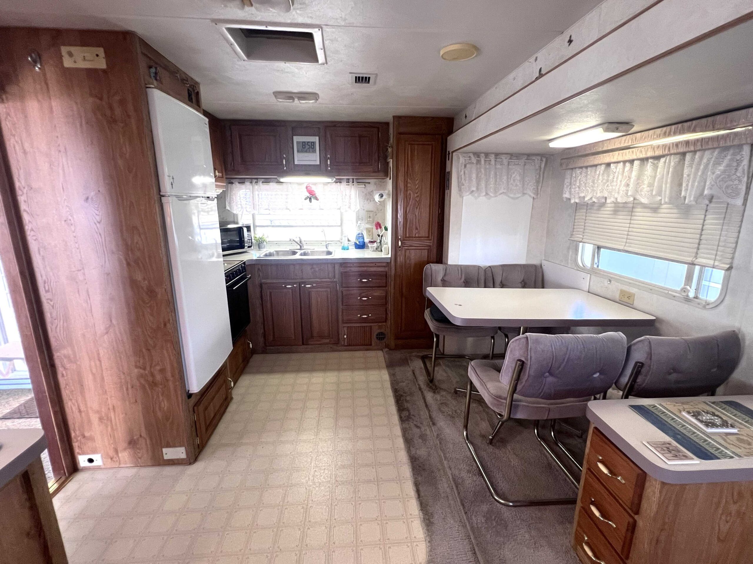 - L-shaped kitchen with gas stove, RO system, and dining area