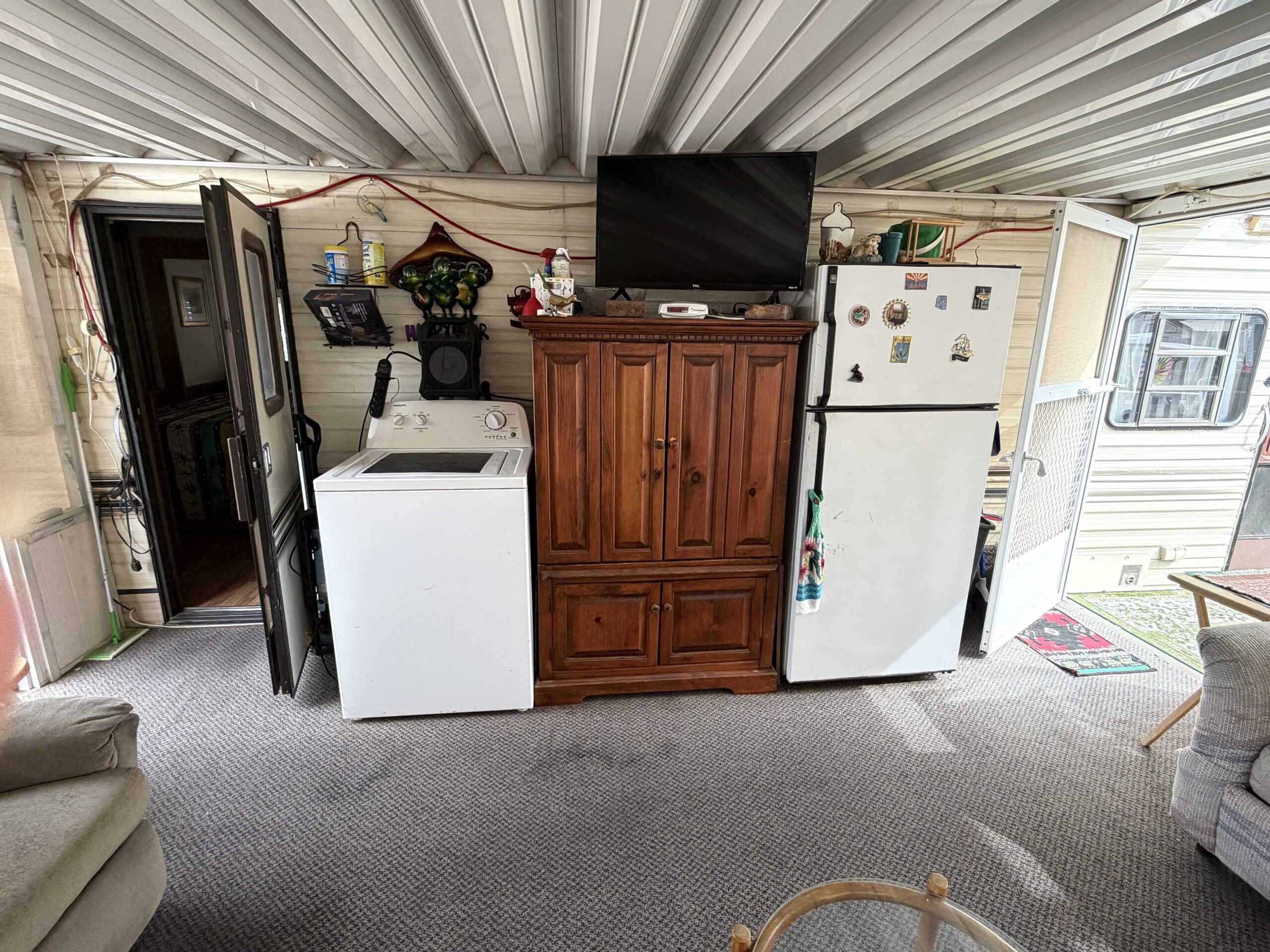 - Screened in deck with plenty of seating for friends, extra fridge for your beverages, and washer. Screens can be rolled up to allow more light