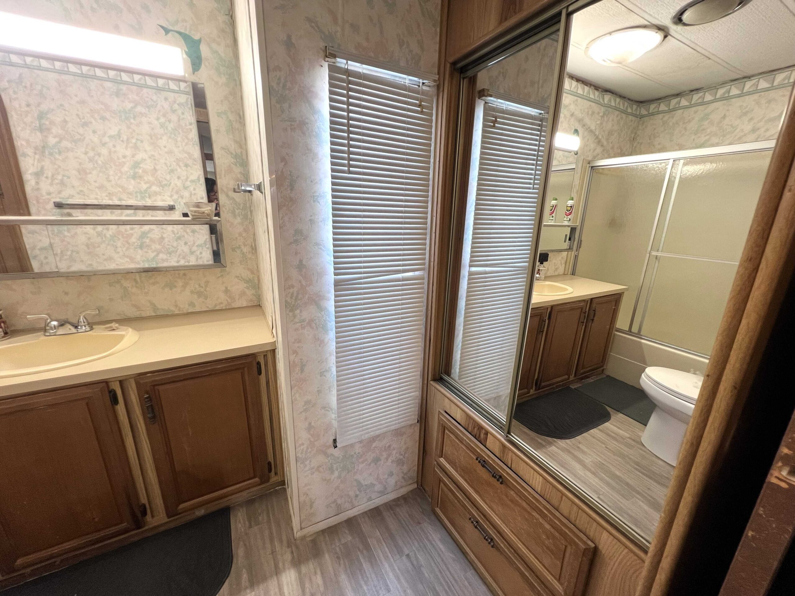 - Huge restroom with shower/tub. Ample vanity area, and additional closet