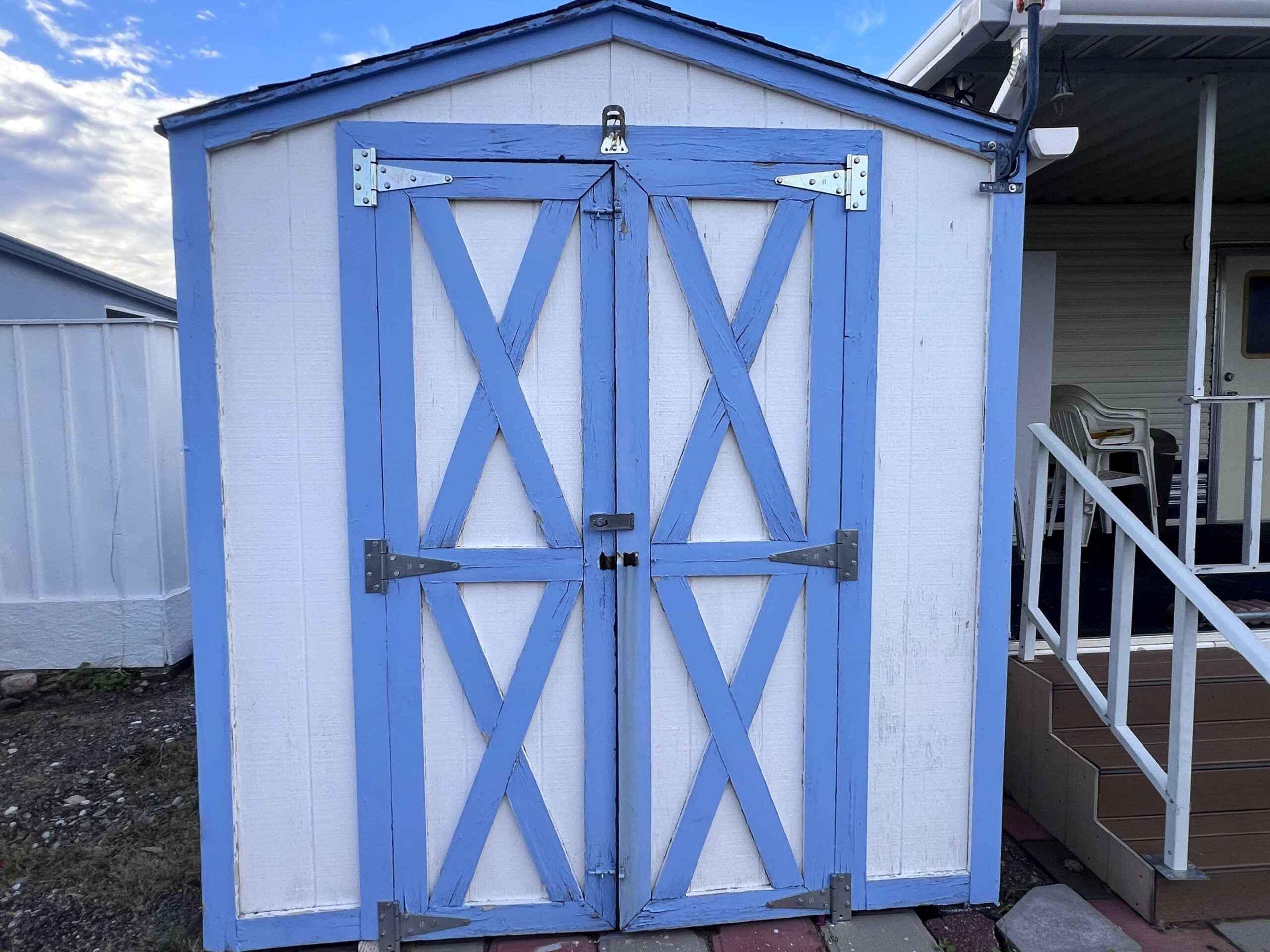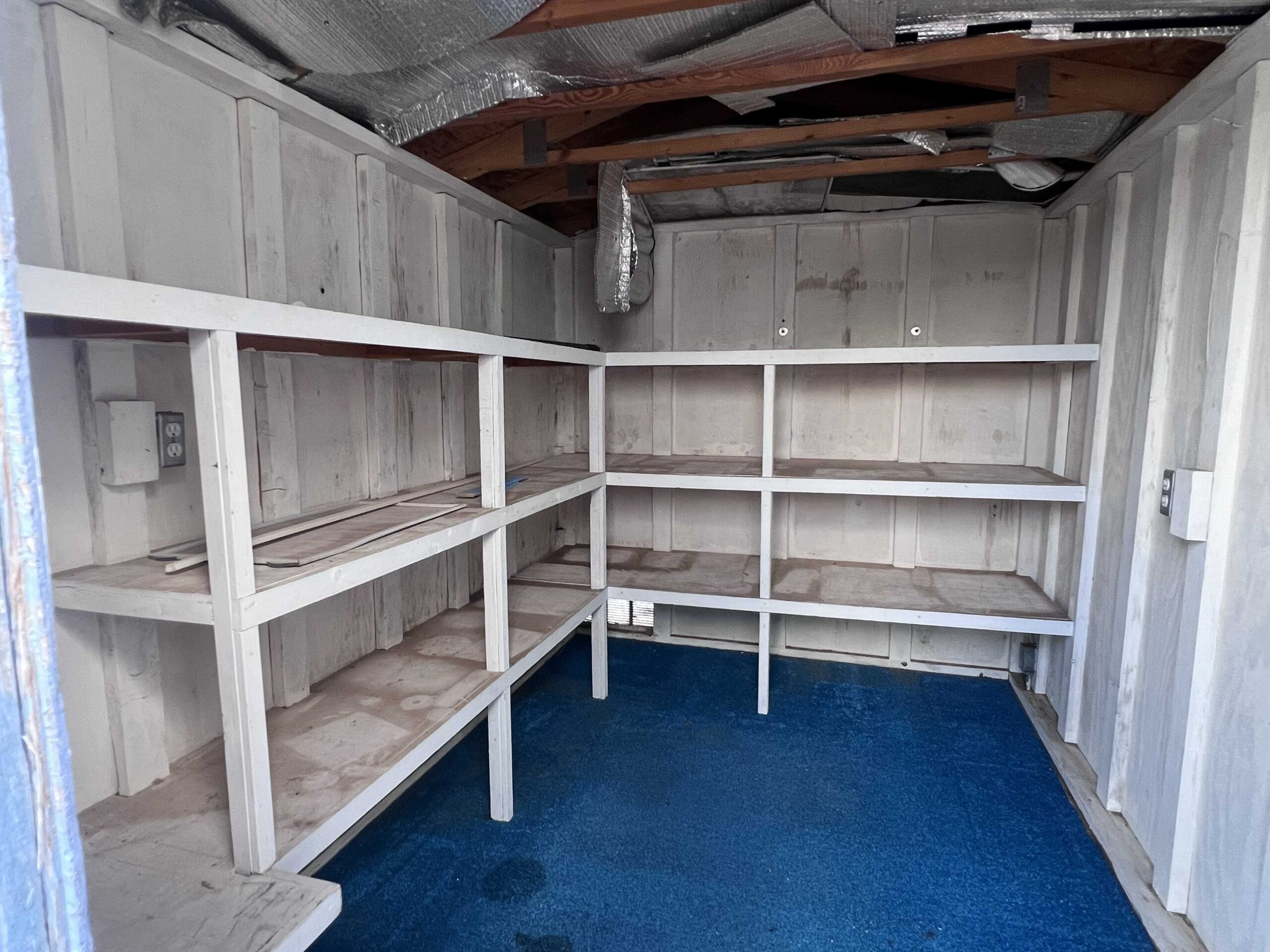 - Big storage shed with lots of shelving