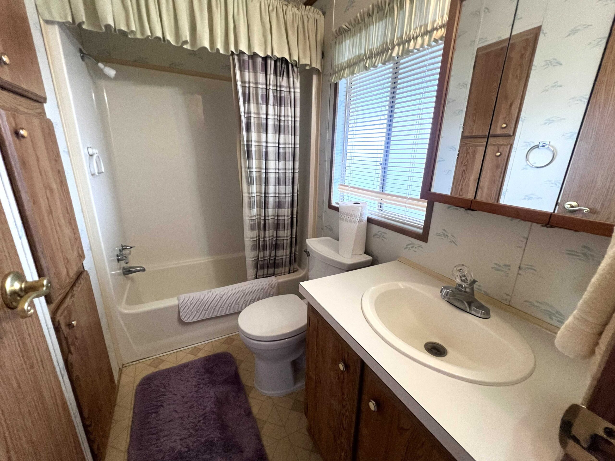 - Big restroom with shower/tub combo, and cabinets to store your towels